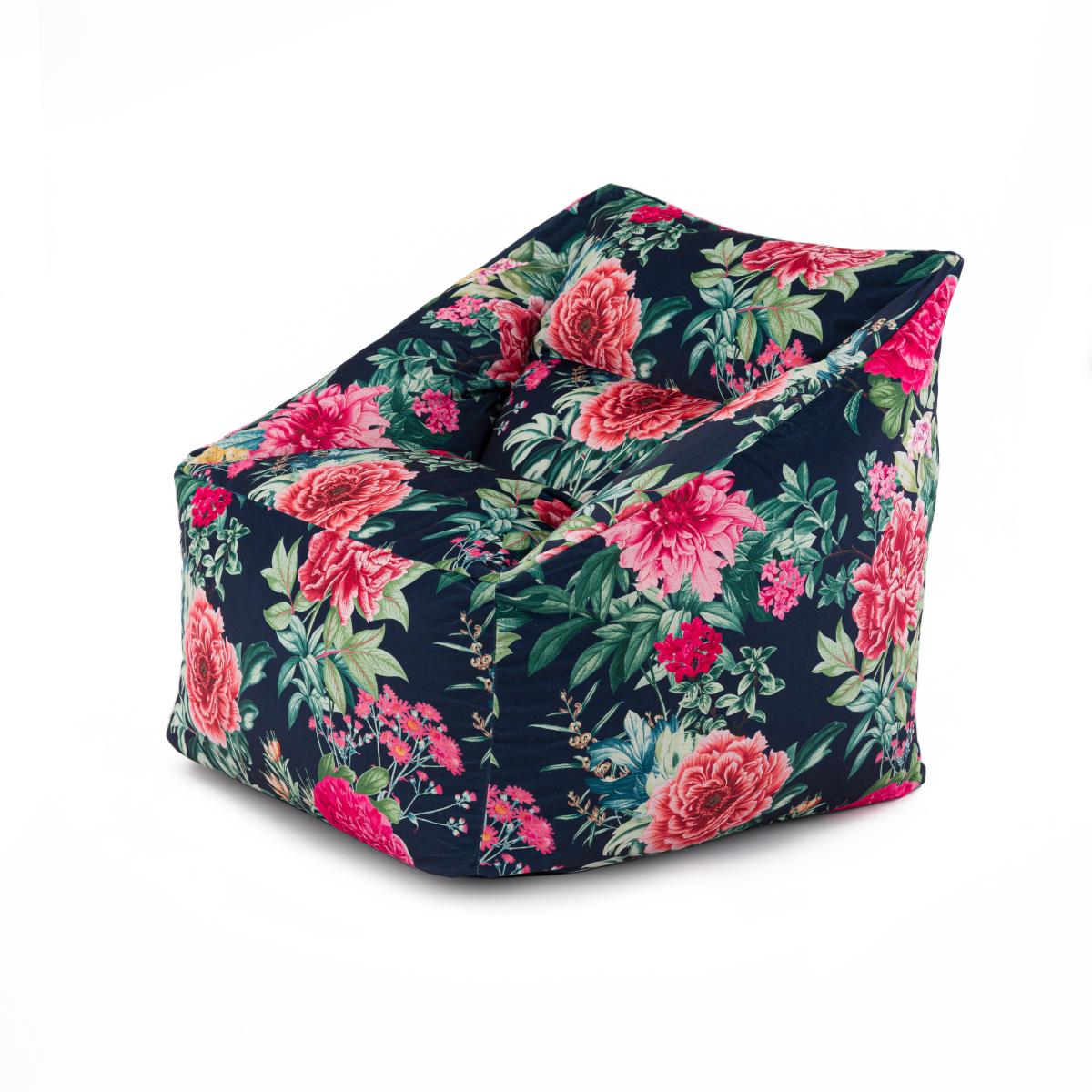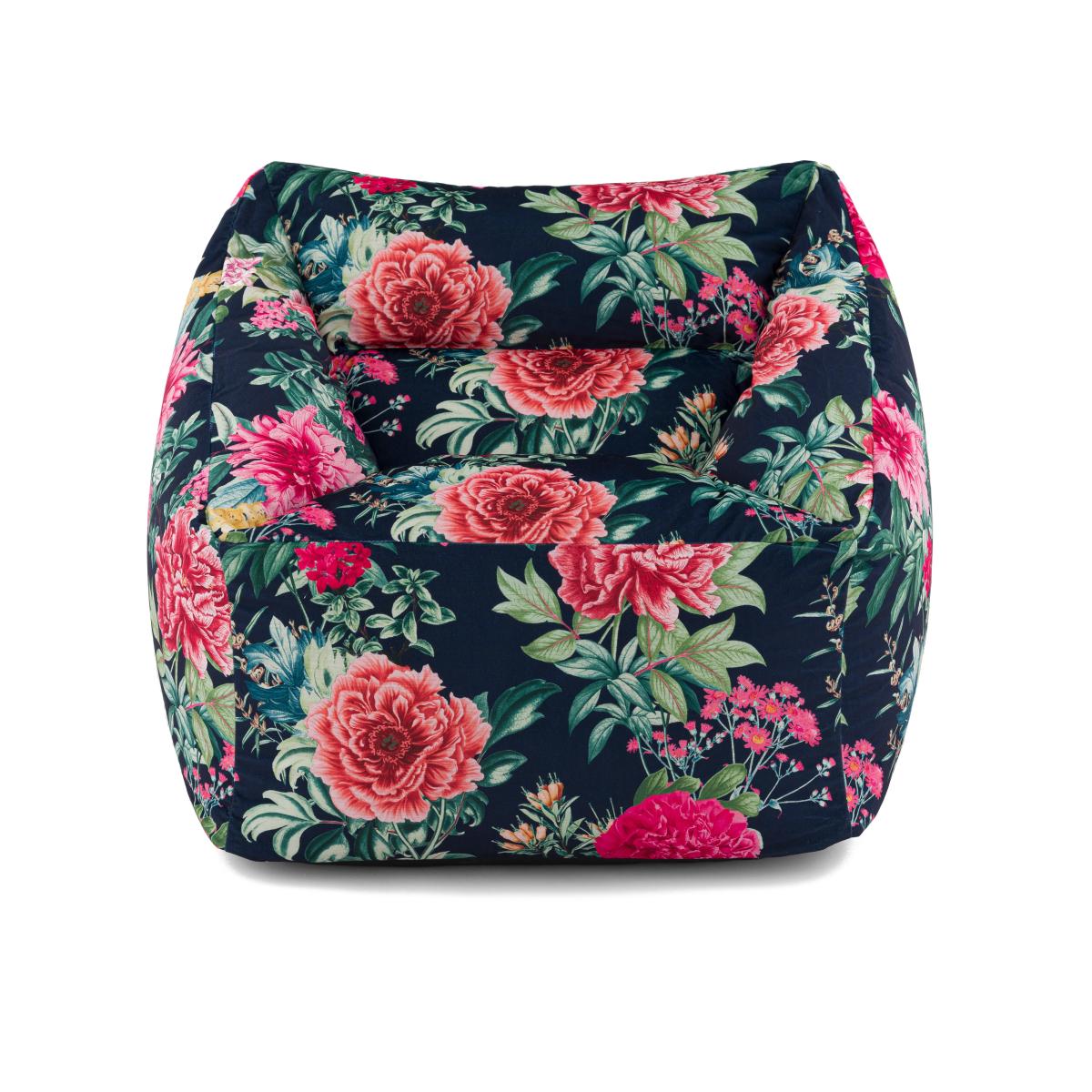 Peony Floral Square Beanbag Chair Navy (Blue)