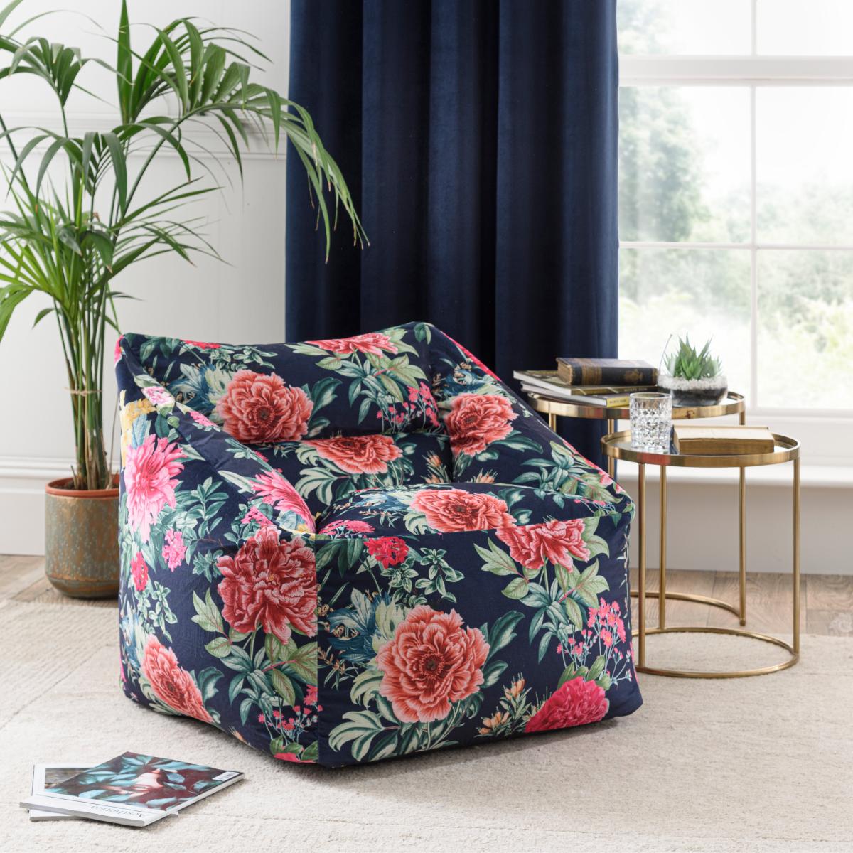 I love this navy floral beanbag as a versatile and comfortable statement piece. Its vibrant peony print can brighten up casual living spaces, children’s rooms, or even cosy reading nooks. It works particularly well in eclectic, boho, or contemporary interiors where bold patterns and colours are embraced. Practical styling tips include pairing it with neutral surrounds to let the pattern stand out, or combining it with textured cushions for a layered look. Its adaptable size makes it easy to move around, so it’s perfect for creating a relaxed, inviting atmosphere that’s both functional and fun.