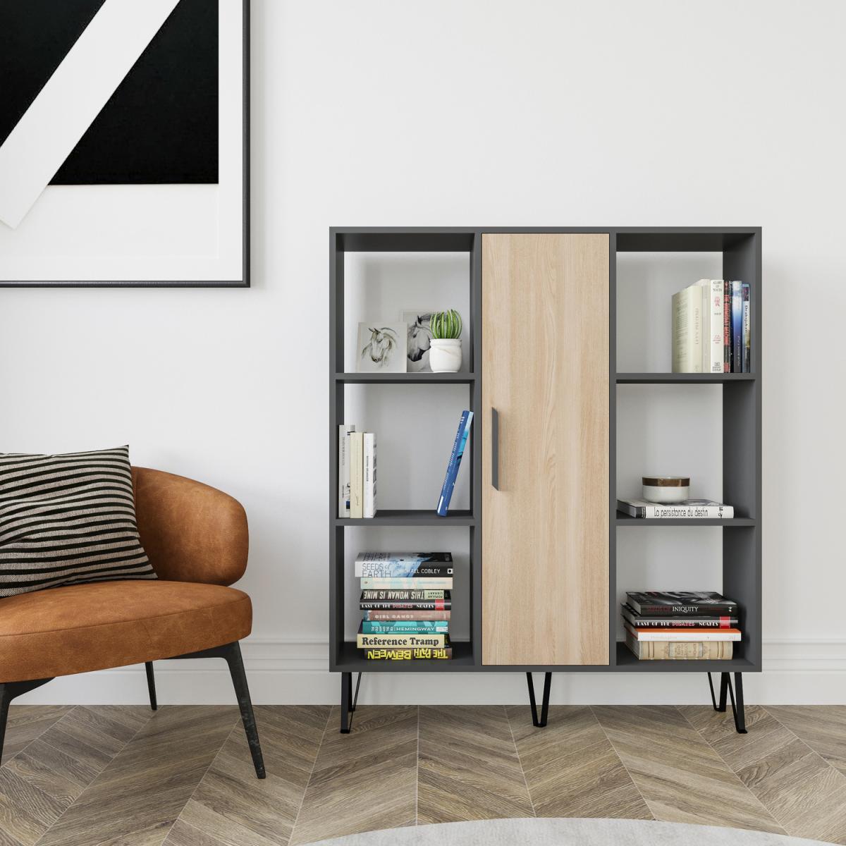 Peoria's 125 cm tall modern bookcase has an elegant design. The bookcase with 6 open and 3 interior shelves and 1 cabinet adds your home a modern look. The bookcase provides storage space for your books, CDs, and accessories while creating a modern and stylish atmosphere in your home/office. The bookcase is made of 18mm thick melamine veneer particle board and banded with a PVC edge band. It is manufactured using eco-friendly and health-friendly materials. The product will be delivered to the customer in the original package as disassembled. It is designed to be assembled by the customer using a power drill. Assembly instructions and installation hardware are included in the package. For fast and error-free installation, product parts are numbered with stickers following the assembly guide.