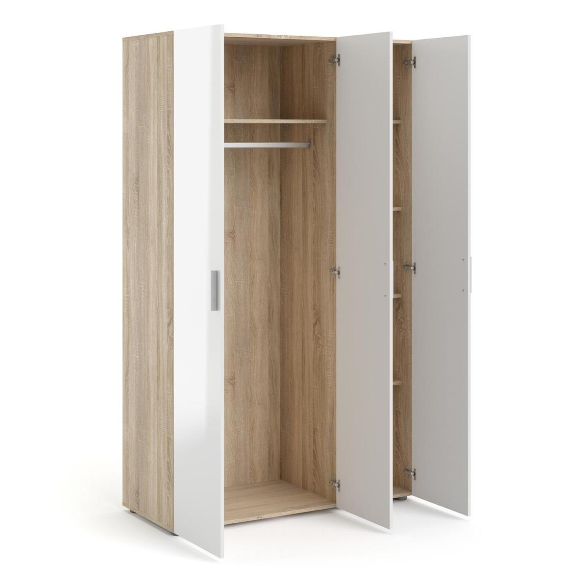 A stylish, practical storage solution for the bedroom, this Pepe 3-Door Wardrobe is a beautiful addition to your bedroom. Featuring a hang rail for clothes and shelves for accessories, shoes, and bags, you can keep your space looking neat and organised. The wardrobe features adjustable hinges on all doors for your convenience too.