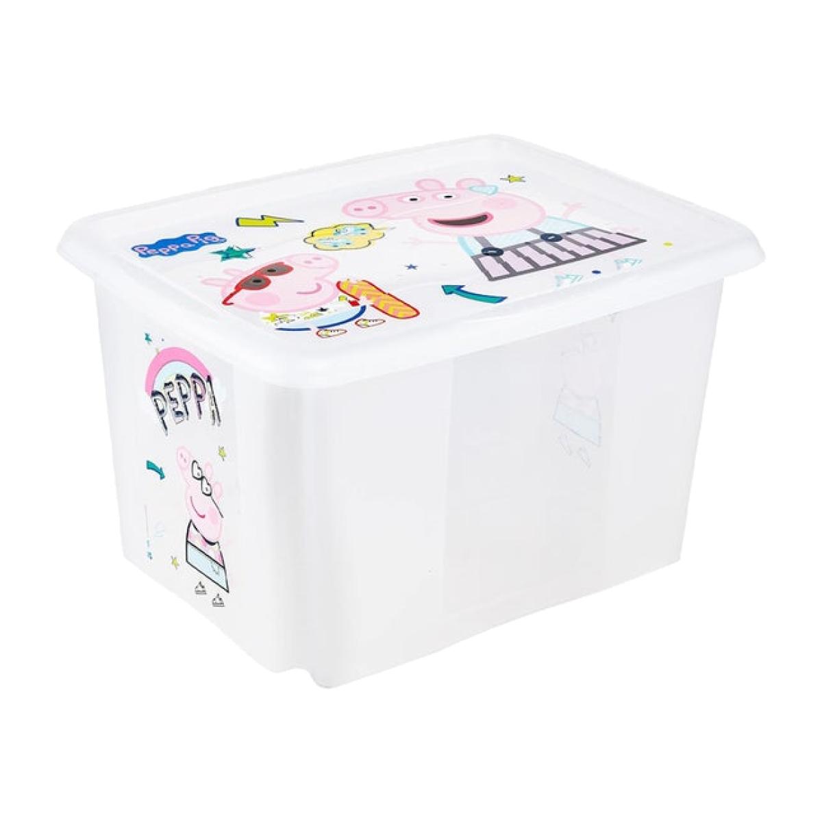 * Large 30. L capacity - ideal for storing toys, clothes and more! * Space saving as it's stackable * Fun Peppa Pig design Keep your child’s room tidy and stylish with the Keeeper Peppa Pig Turn Around Stacking Box with Lid. With a generous 30-litre capacity and cute fun Peppa Pig design, this storage box is perfect for organising toys, books, clothing, and more. Made from durable, lightweight polypropylene, this storage solution is built to last and is designed with both functionality and style in mind. The sturdy lid keeps items secure, while the stackable design helps save floor space, making it ideal for smaller rooms or shared spaces. The vibrant colourway and Peppa Pig graphics add a playful yet sophisticated touch, blending seamlessly into any child’s room decor. This storage box is not only a practical solution for clutter but also a fun way to incorporate beloved characters into everyday life. The Peppa Pig graphics on the box add a delightful touch that children love. This storage box features a stackable design, enabling easy storage without taking up extra floor space. Perfect for small rooms or those needing multiple storage boxes, it allows you to make the most of vertical space, keeping the room neat and organised. The box comes with a fitted lid, keeping the contents secure from dust, spills, or any external elements.