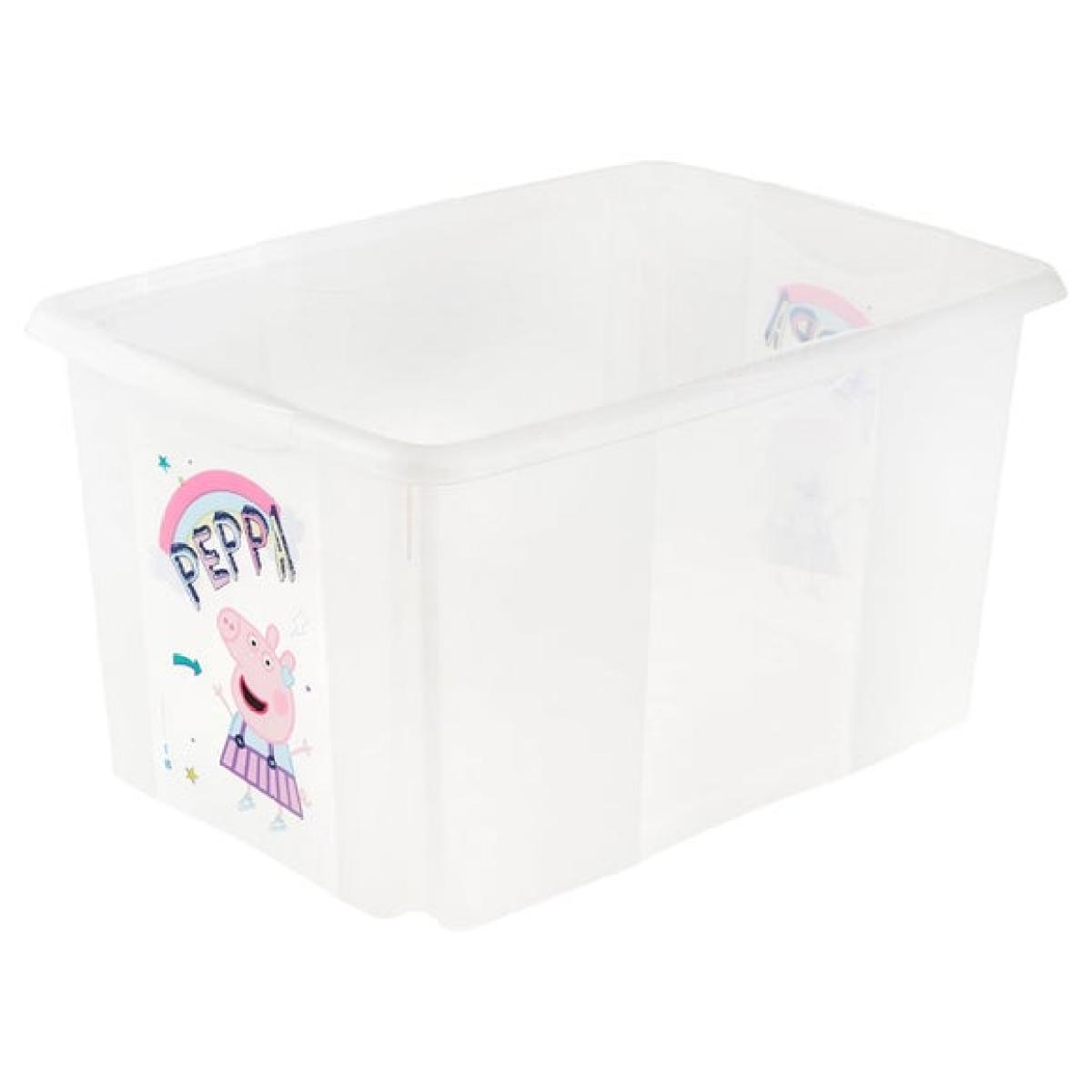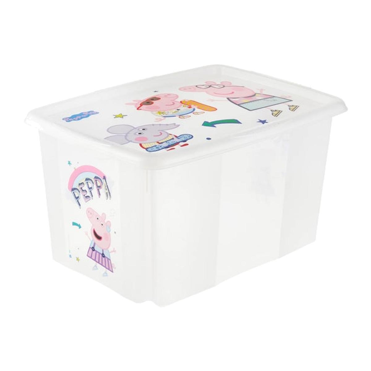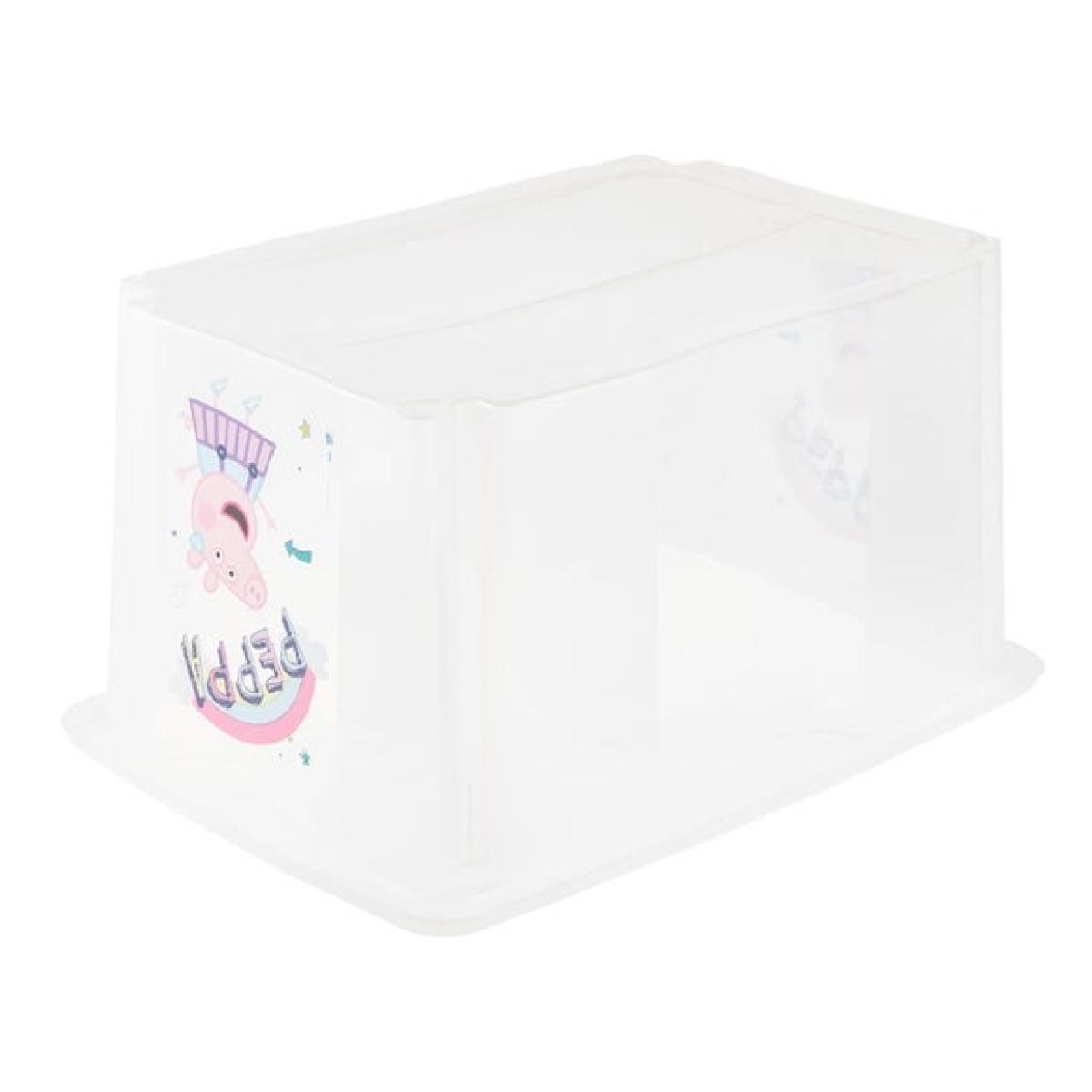 * Large 45. L capacity - ideal for storing toys, clothes and more! * Space saving as it's stackable * Fun Peppa Pig design Keep your child’s room tidy and stylish with the Keeeper Peppa Pig Turn Around Stacking Box with Lid. With a generous 45-litre capacity and cute fun Peppa Pig design, this storage box is perfect for organising toys, books, clothing, and more. Made from durable, lightweight polypropylene, this storage solution is built to last and is designed with both functionality and style in mind. The sturdy lid keeps items secure, while the stackable design helps save floor space, making it ideal for smaller rooms or shared spaces. The vibrant colourway and Peppa Pig graphics add a playful yet sophisticated touch, blending seamlessly into any child’s room decor. This storage box is not only a practical solution for clutter but also a fun way to incorporate beloved characters into everyday life. The Peppa Pig graphics on the box add a delightful touch that children love. This storage box features a stackable design, enabling easy storage without taking up extra floor space. Perfect for small rooms or those needing multiple storage boxes, it allows you to make the most of vertical space, keeping the room neat and organised. The box comes with a fitted lid, keeping the contents secure from dust, spills, or any external elements.