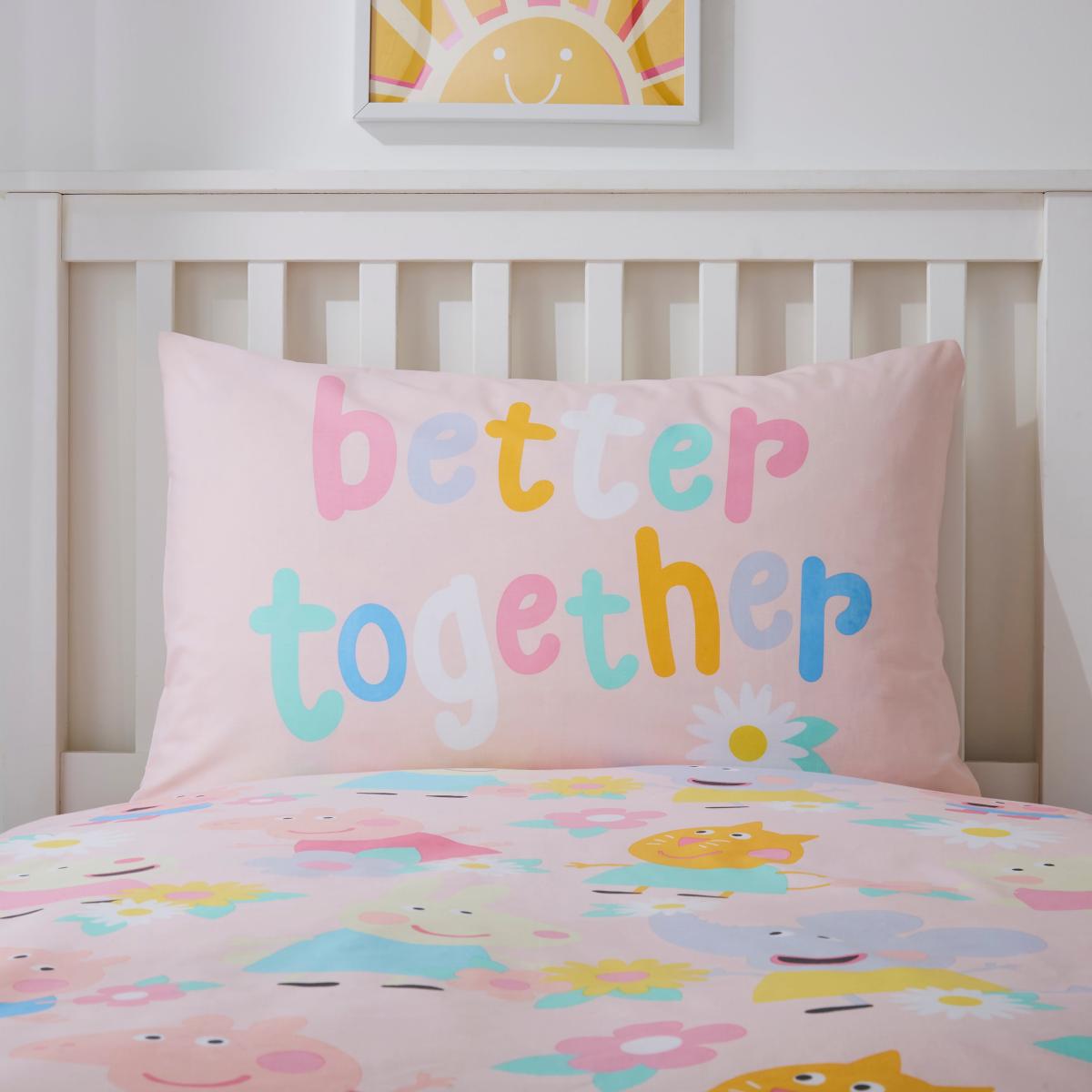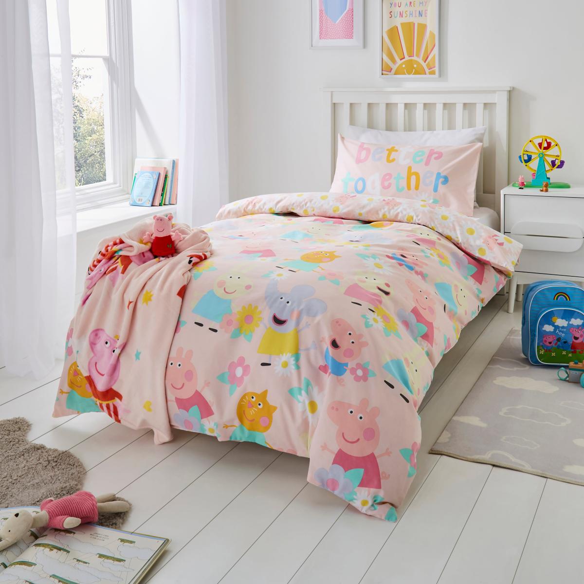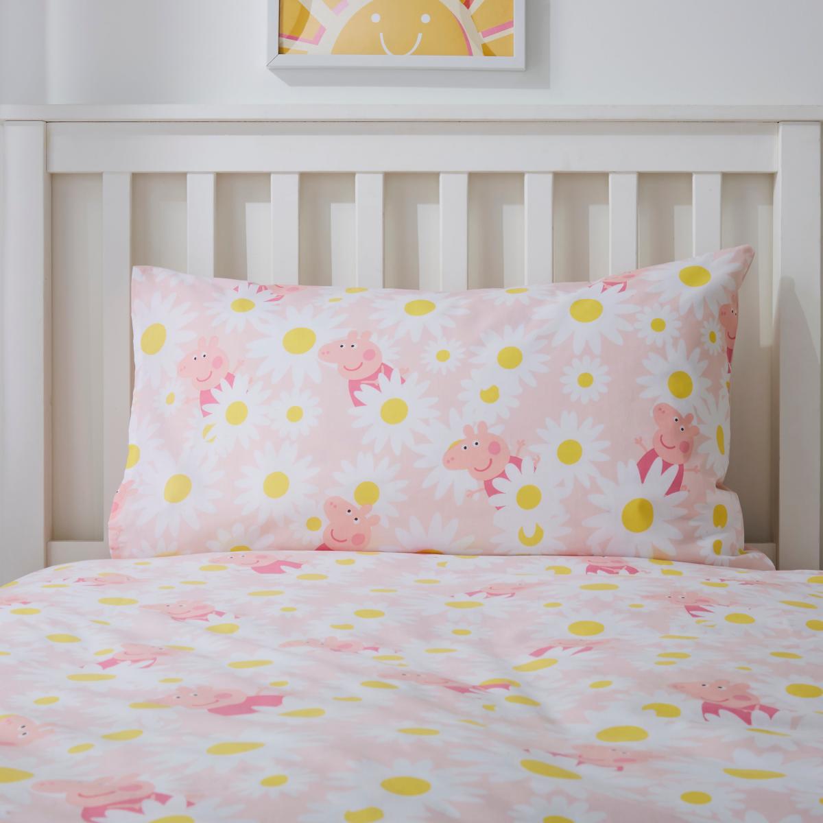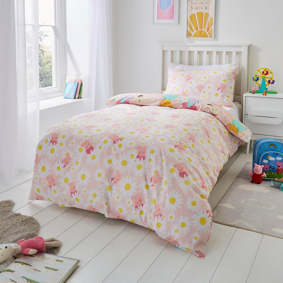Peppa Pig Pink Duvet Cover and Pillowcase Set Pink/Blue/Yellow