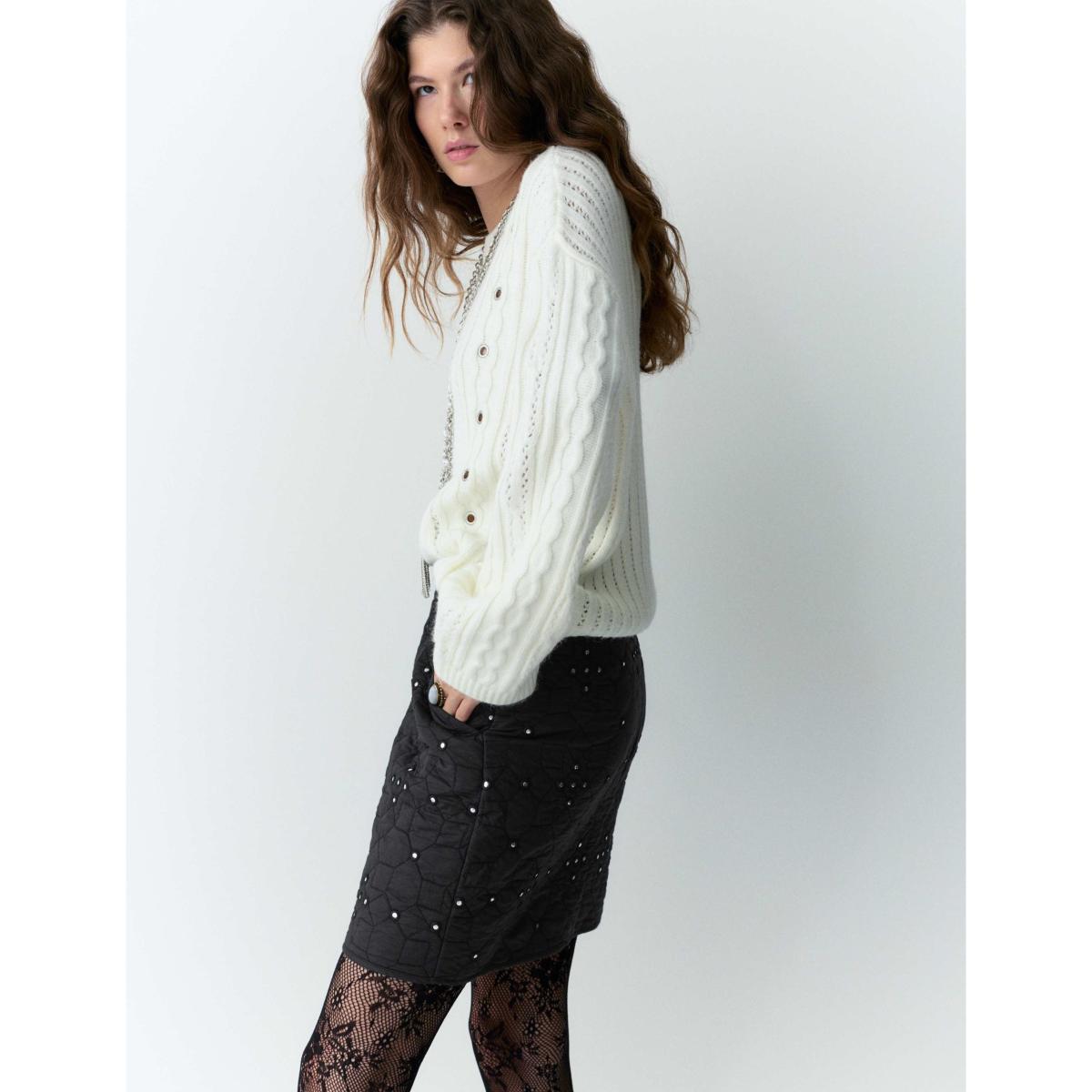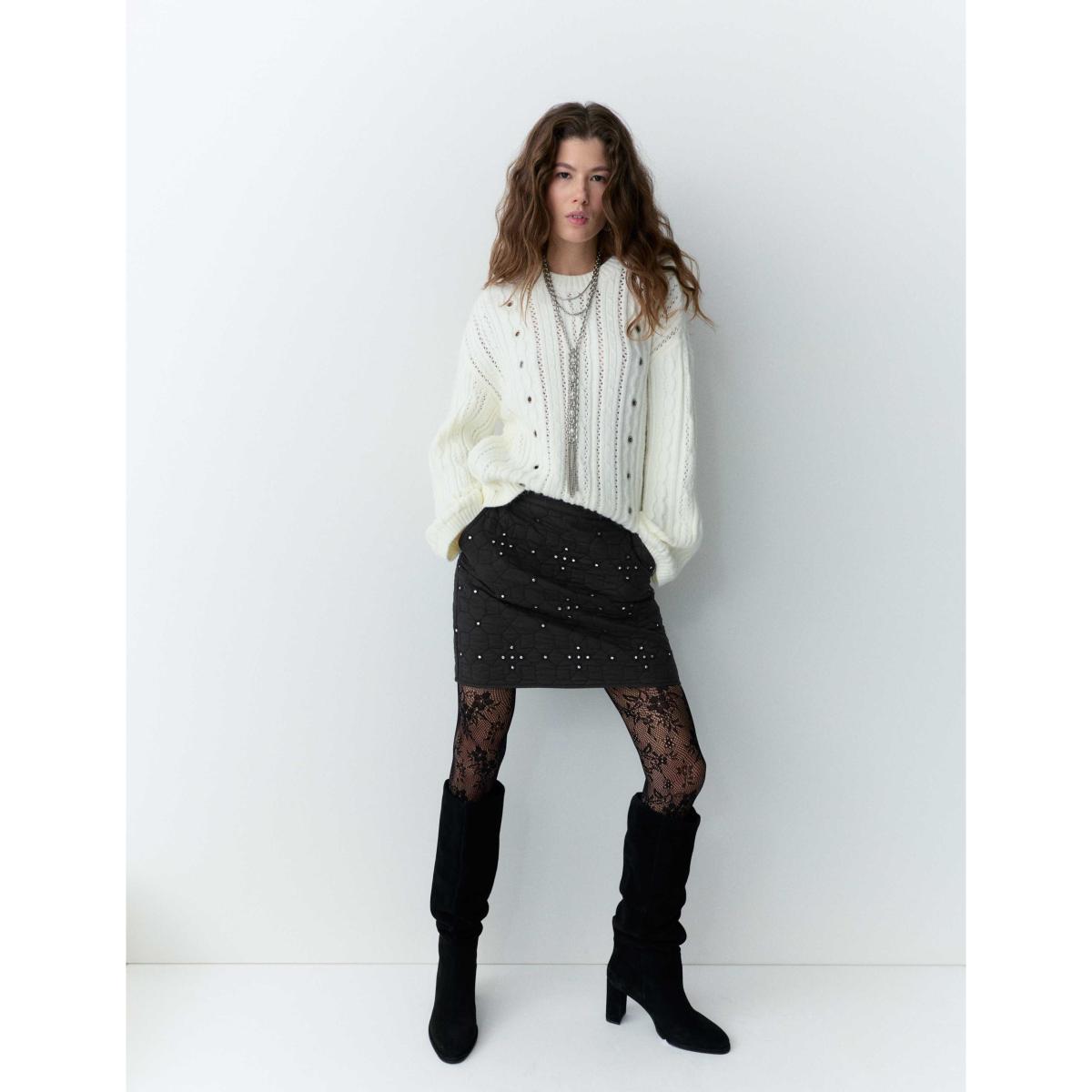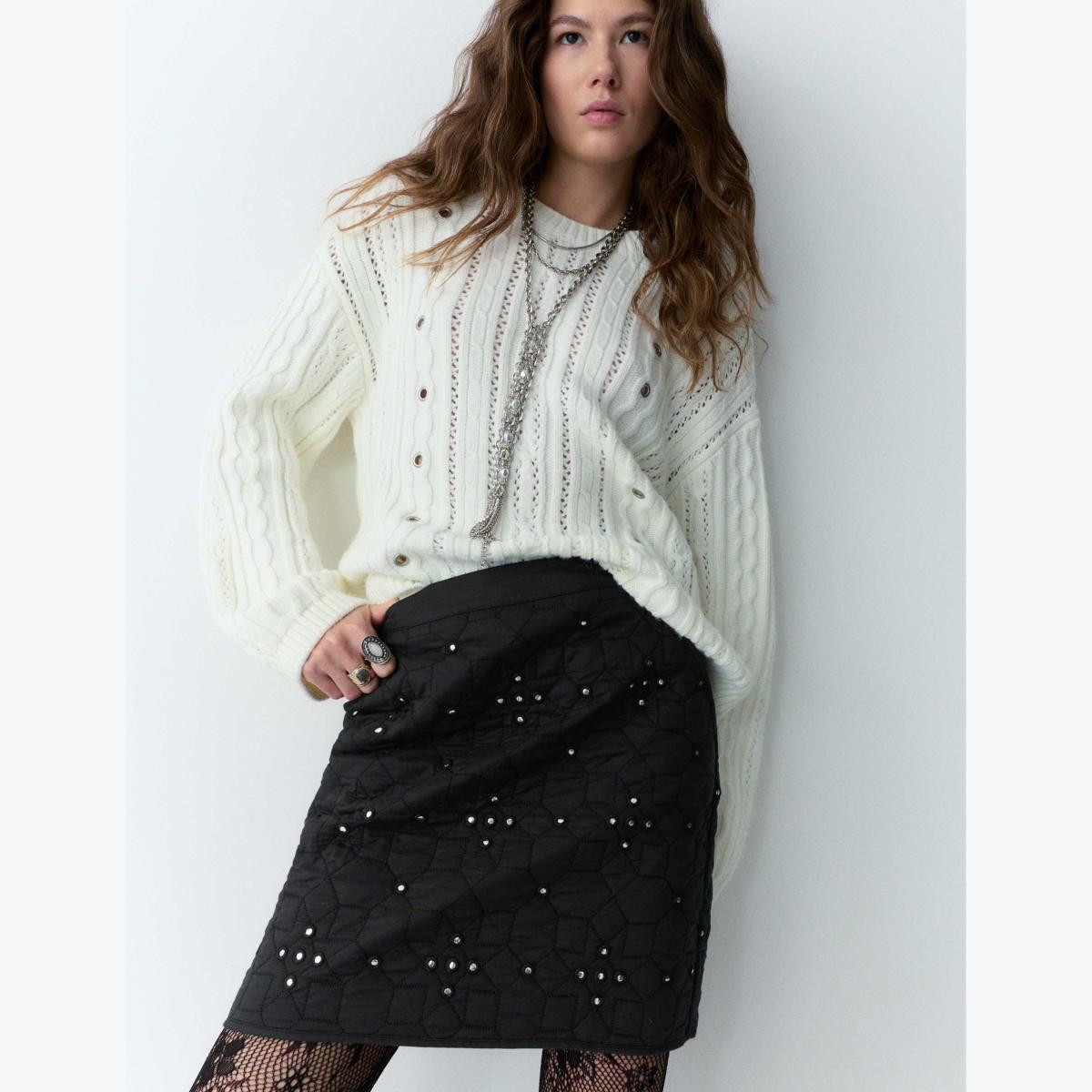 I love this mini skirt because of its bold, quilted design and embellishments, making it an eye-catching piece for any wardrobe. It works well in interiors with a modern, eclectic vibe where mix-and-match textures like leather, mirrors, and metallic finishes are key. When styling the skirt, pairing it with sleeker tops or chunky knits creates a chic contrast, while accessories like layered silver necklaces enhance its edgy appeal. In terms of interior inspiration, think of pairing it with mirrored furniture or glossy, black surfaces to echo its glamorous, reflective finish, making spaces feel both stylish and contemporary. It’s a versatile piece that can elevate casual looks or double up for party-ready outfits - just like it can add a statement touch in a well-designed interior.