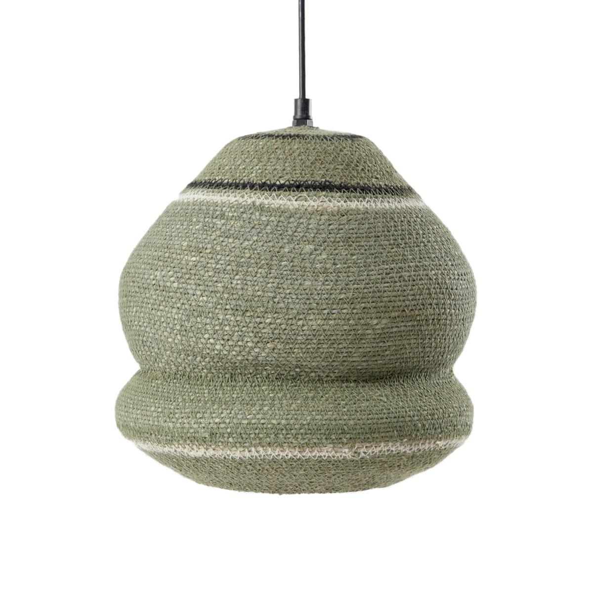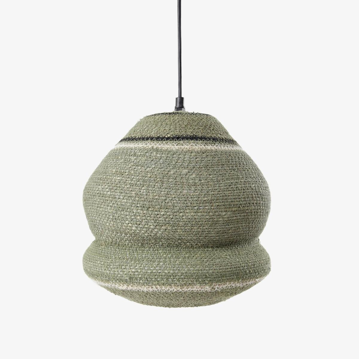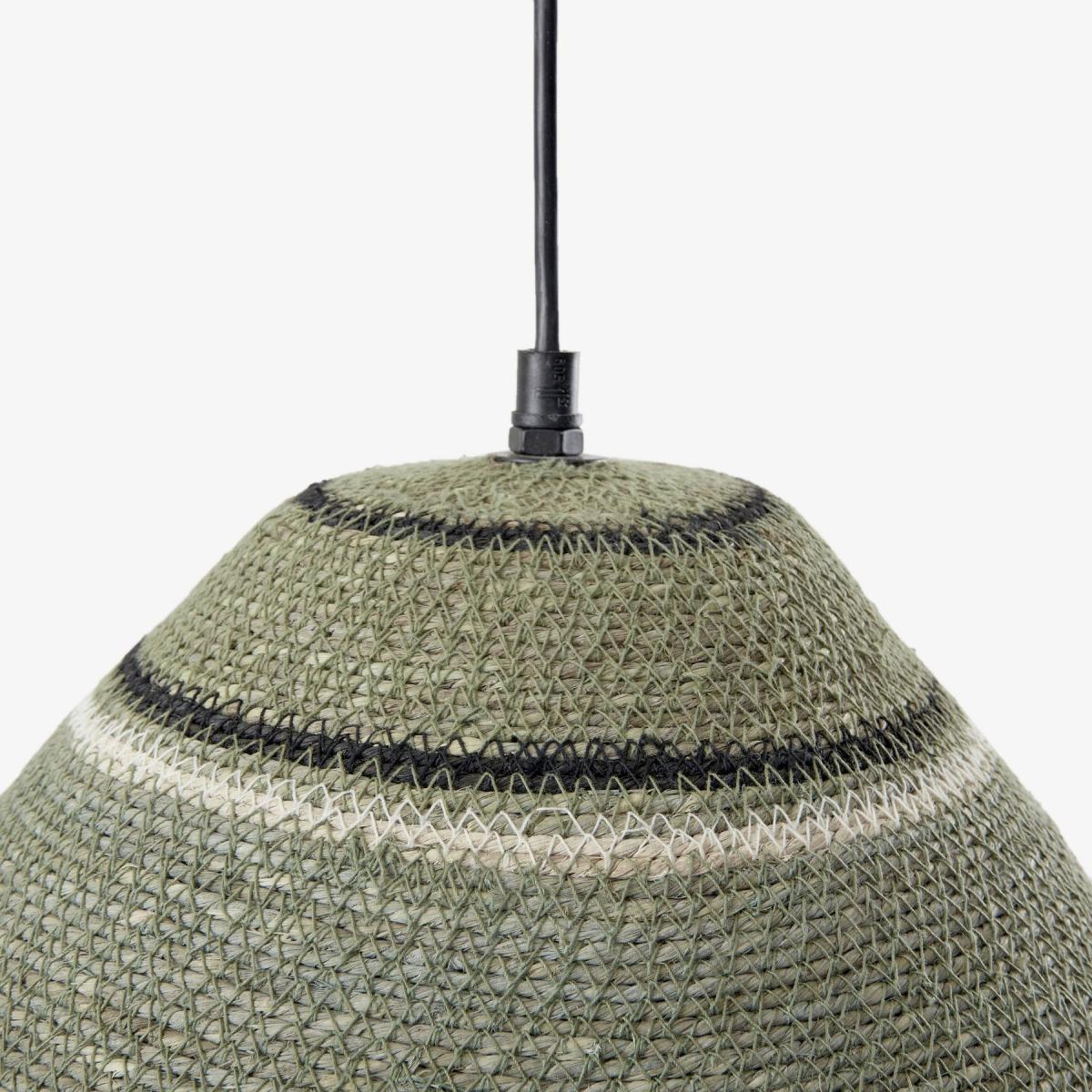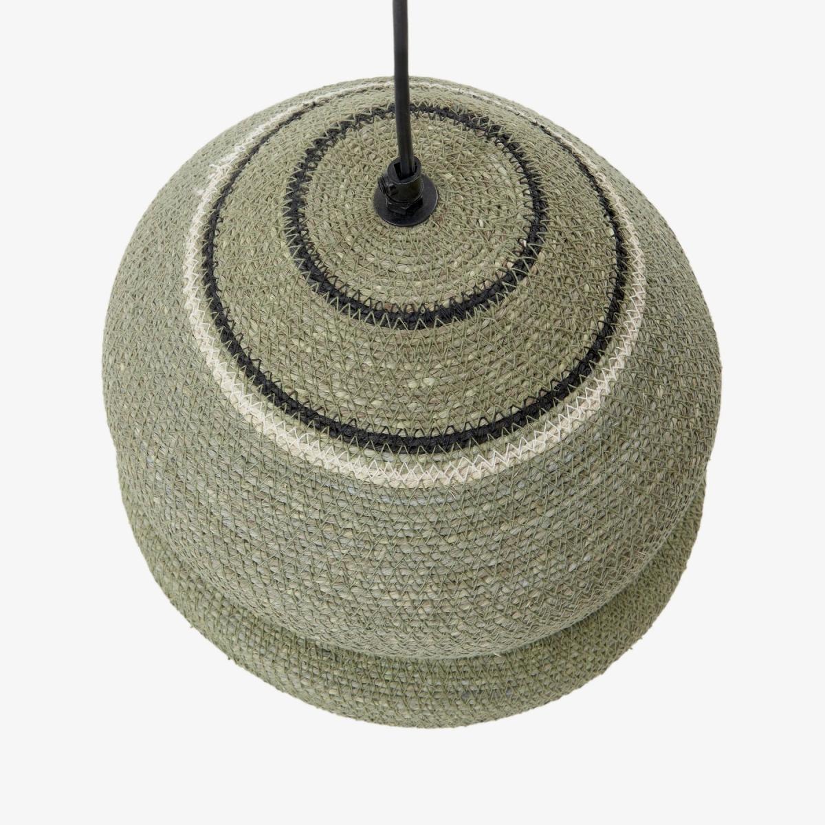 Our Pera handwoven ceiling pendant lamp made of green seagrass will bring a soft point of light to your room. It creates a contemporary boho atmosphere thanks to skilled artisans who have adapted traditional weaving techniques. With its understated, natural aesthetic, Pera's gentle design can adapt to the dining room, kitchen, or even bedrooms, giving a fresh look to your home. This unique ceiling light is a sustainable and artisanal alternative that generates a bright and welcoming atmosphere.