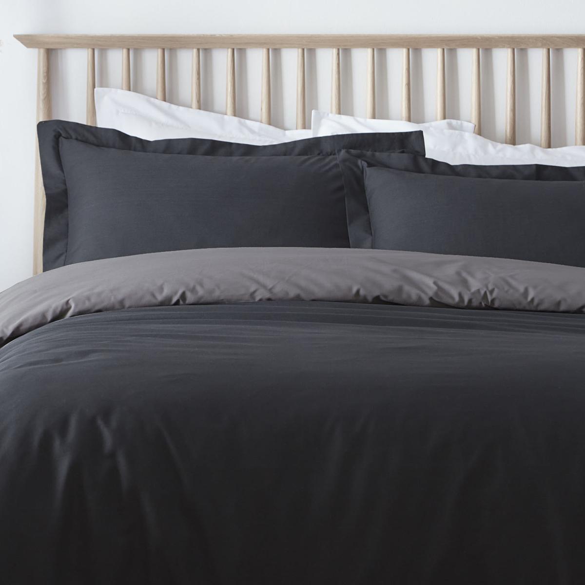Percale Plain Dyed 200 Thread Count Duvet Cover and Pillowcase Set - Black / Single