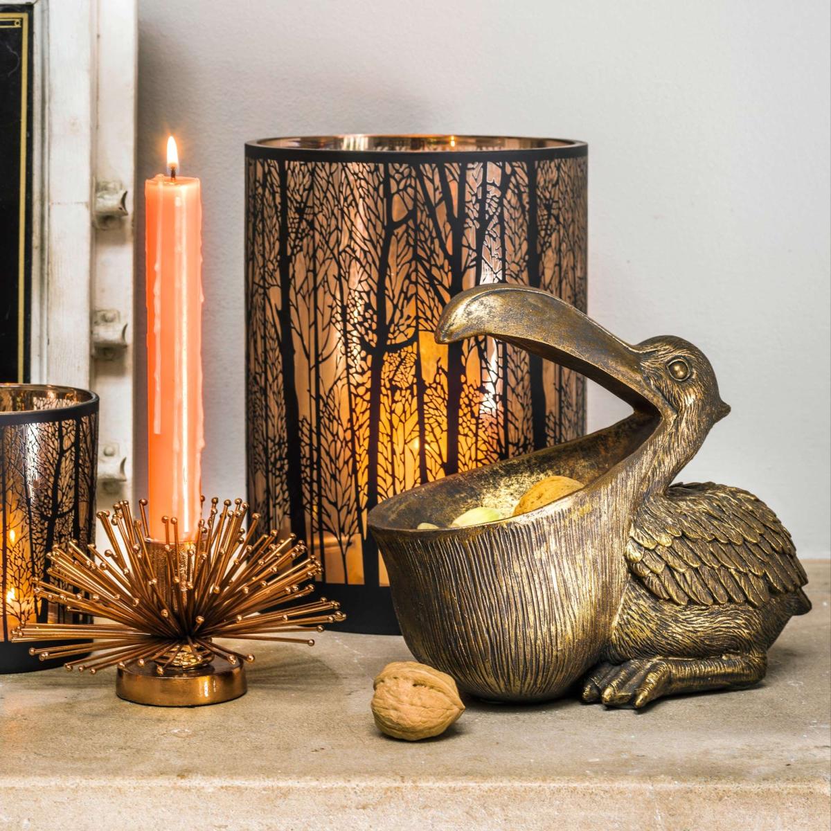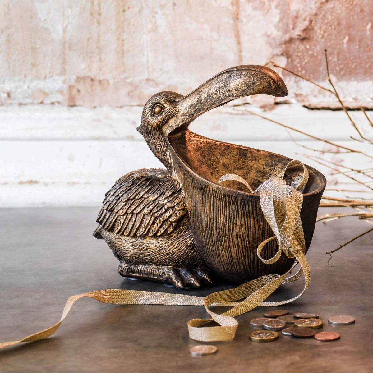 A charming storage option for your home, our Percy pelican dish is crafted from resin with an aged bronze finish.