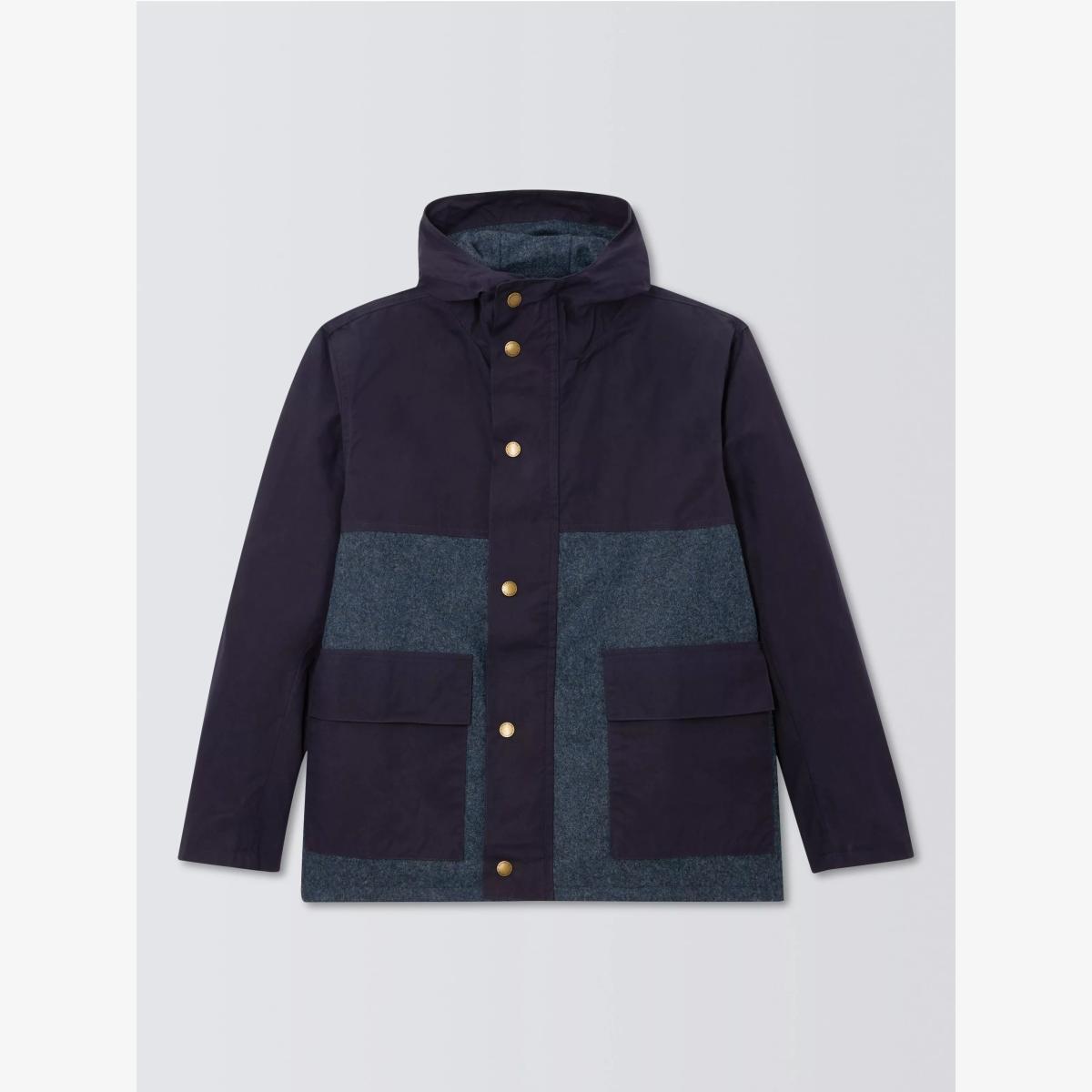 A stylish and versatile jacket by Peregrine for colder weather, combining waterproof dry waxed cotton with Moon tweed contrast.
