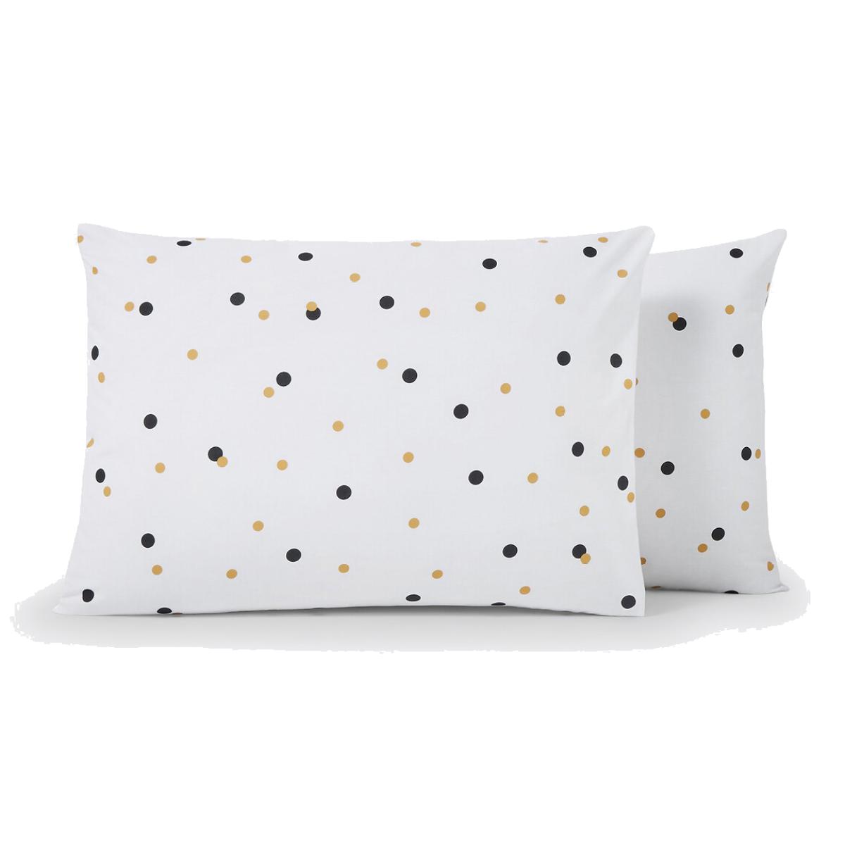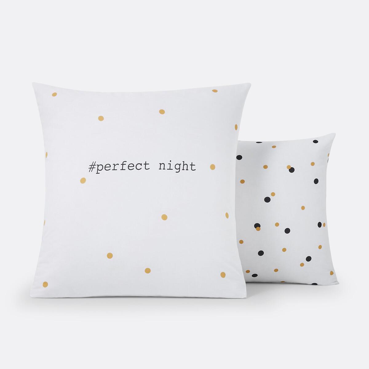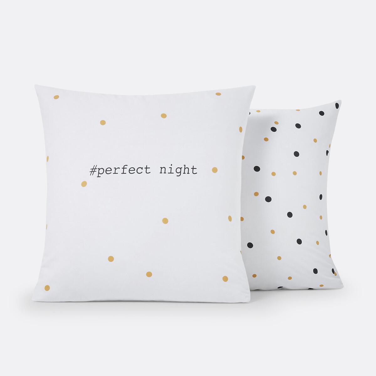 Perfect Night printed pillowcase. Pure brilliant white bedding sprinkled with pretty black and gold polka dots – it’s the perfect design for a perfect night!Cotton is part of our daily lives. We love it for its suppleness and softness. Easy Care, it is ideal for the beds of young and old alike!Product Details • 100% cotton • 144 thread count • Square : front printed with message and gold polka dots on white background, back with gold and black polka dots on white background • Rectangular cover: front / back gold and black polka dot patterns on white background. Care Advice • Machine washable at 60°C • By washing your laundry at 40°C instead of 60°C, you limit energy consumption. Dimensions • 50 x 70cm: Rectangular pillowcase • 63 x 63cm: Square pillowcase • OEKO-TEX® Standard 100. Standard 100 certification by OEKO-TEX® tests textile products for harmful substances via an independent, international label.