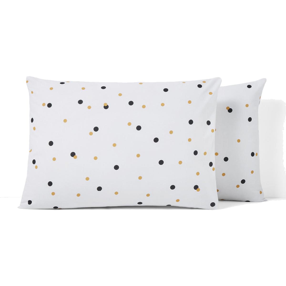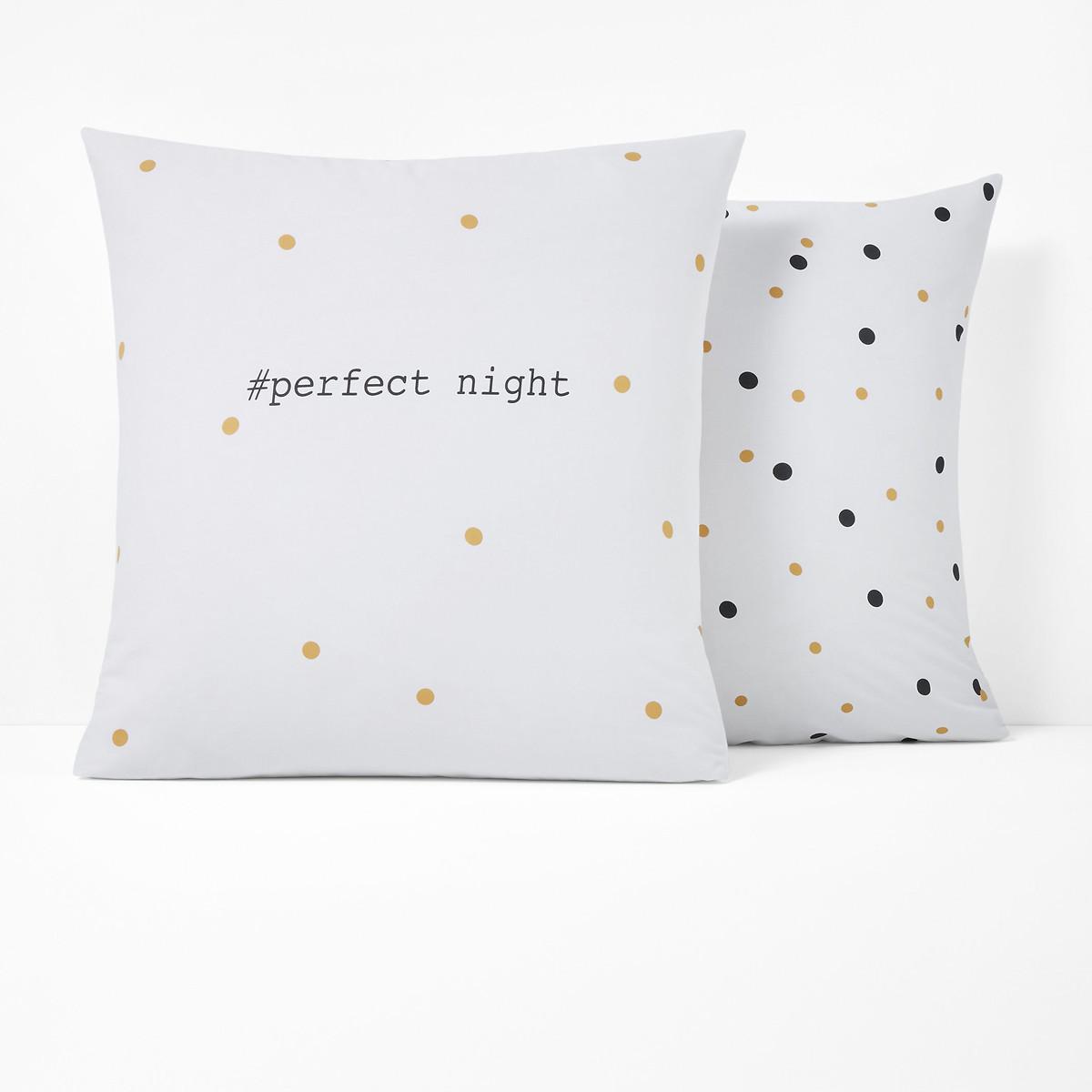 Perfect Night printed pillowcase. Pure brilliant white bedding sprinkled with pretty black and gold polka dots – it’s the perfect design for a perfect night!