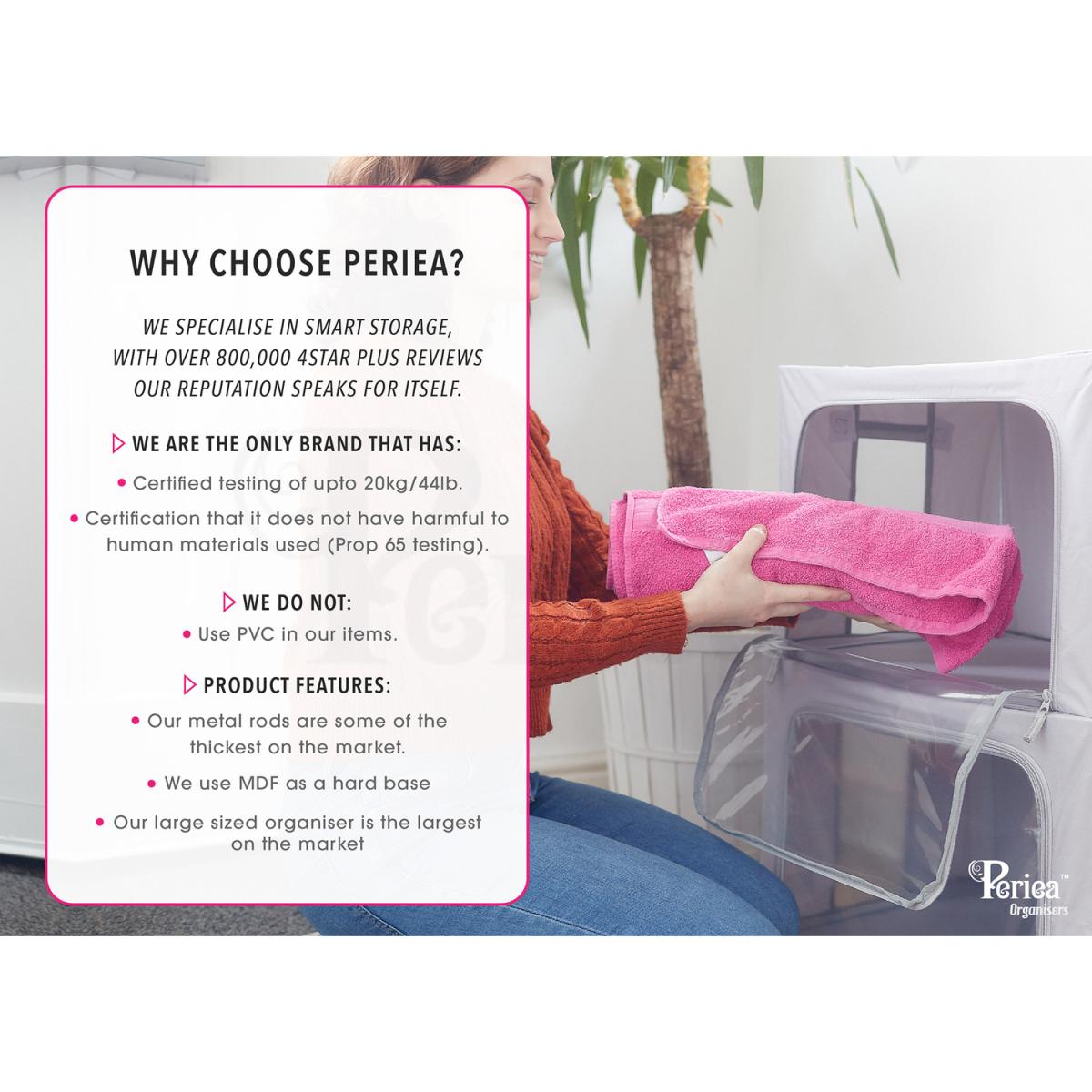 Multi-purpose storage boxes certified to hold up to 20kg. IPX4 certified splash-proof. Front window 90 larger than any other similar box. The most durable metal-framed storage box on the market today. Perfect for storing seasonal clothes, bedding, tidying away children's toys, books, shoes, handbags, Christmas decorations, baby clothes and equipment or almost anything. Stackable and collapsible made to fit almost any location within your home or office, the sturdy folding metal frame means that you can stack the storage boxes and fold them flat when not in use.