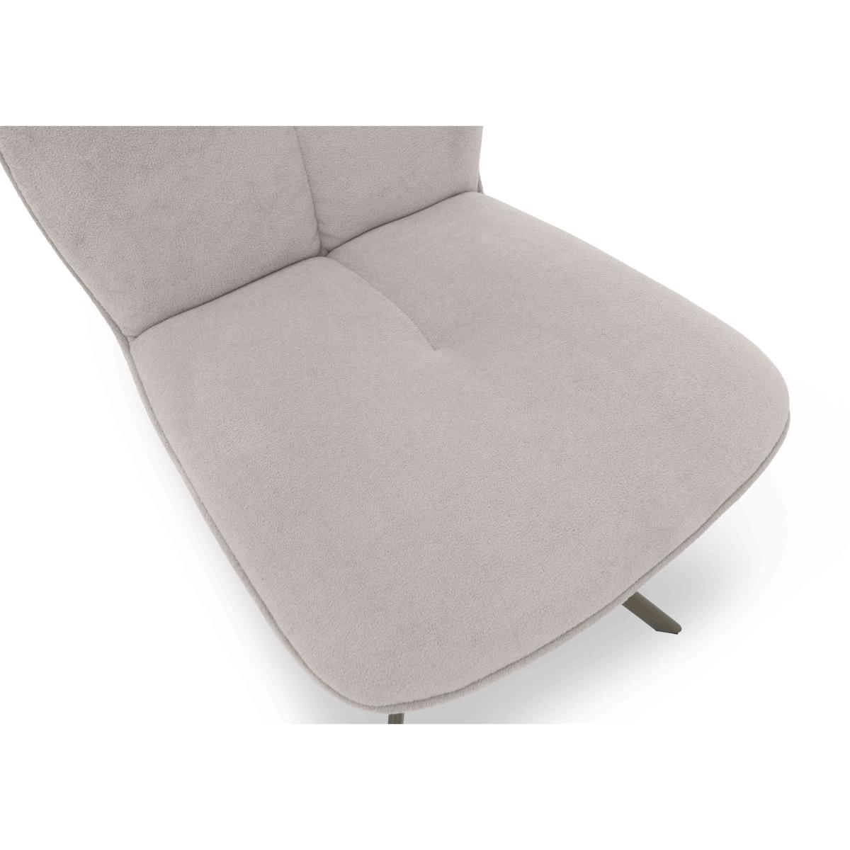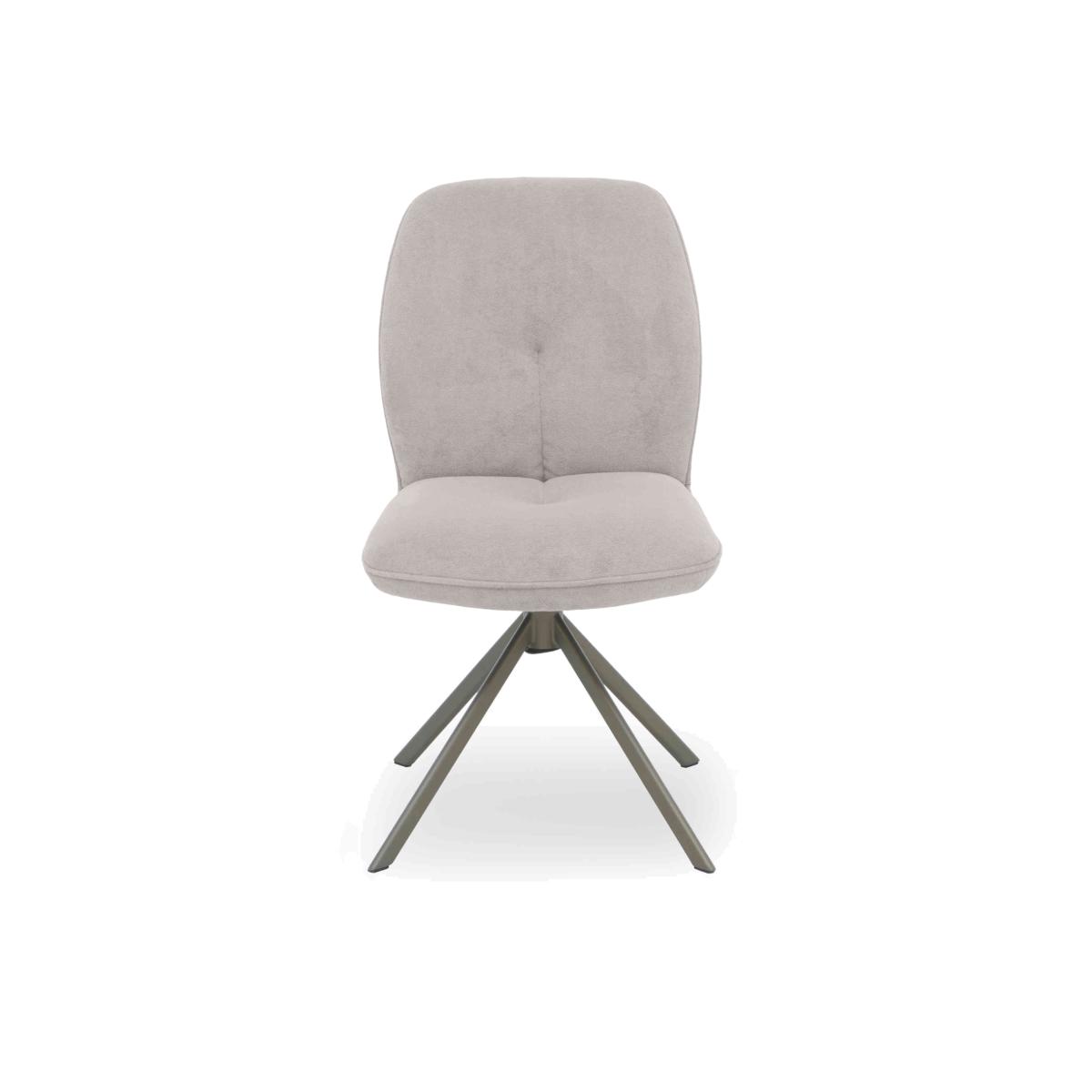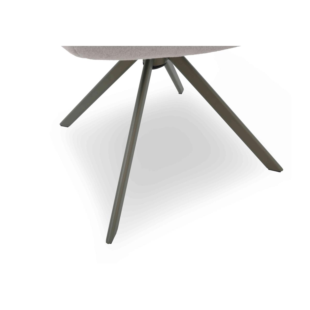 Our Perla range takes everything we love about statement dining style and gives it a new glam look. You’ll find surfaces finished with gorgeous ceramic imported from Italy, statement metal table bases and chair legs with a bronze-toned finish, and distinctive design elements like the oval-shaped dining table top, the sideboard’s curved silhouette and the swivel-top coffee table. Designed for real-life living, the super-comfy dining chairs have swivel bases that neatly return the chairs to their original position, and ceramic surfaces are bonded to tempered glass for easy cleaning and durability. Bring home singular glam style with the Perla range. This stylish dining chair with auto-return swivel mechanism has metal legs with a bronze-coloured finish and a luxuriously cushioned and upholstered seat. Why you'll love it Glam and elegant style meets superb dining comfort. Well-cushioned seat with a very supportive back. Swivel mechanism automatically returns this chair to its original position. Metal legs have a very stylish dark bronze finish. Soft fabric upholstery in stone. Simply stunning with a Perla ceramic extending dining table. Also available in sets of 2, 4 and 6 dining chairs. This swivel dining chair is part of our Perla range. What you need to know Metal frame and legs. Cushioned with foam.