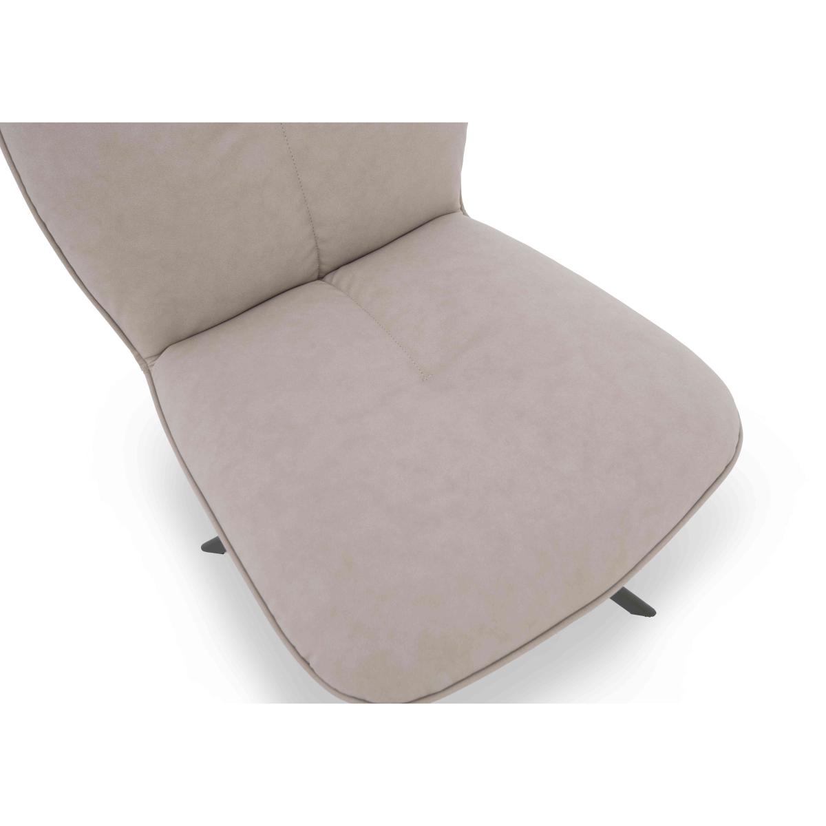 Our Perla range takes everything we love about statement dining style and gives it a new glam look. You’ll find surfaces finished with gorgeous ceramic imported from Italy, statement metal table bases and chair legs with a bronze-toned finish, and distinctive design elements like the oval-shaped dining table top, the sideboard’s curved silhouette and the swivel-top coffee table. Designed for real-life living, the super-comfy dining chairs have swivel bases that neatly return the chairs to their original position, and ceramic surfaces are bonded to tempered glass for easy cleaning and durability. Bring home singular glam style with the Perla range. Swivel dining chairs are perfect for smaller spaces as they take up less room. This one’s even better thanks to its auto-return mechanism and, of course, those dark bronze-finished legs. Why you'll love it Glam and elegant style meets superb dining comfort. Well-cushioned seat with a very supportive back. Swivel mechanism automatically returns this chair to its original position. Metal legs have a very stylish dark bronze finish. Soft faux leather upholstery in taupe. Simply stunning with a Perla ceramic extending dining table. Also available in sets of 2, 4 and 6 dining chairs. This swivel dining chair is part of our Perla range. What you need to know Metal frame and legs. Cushioned with foam.
