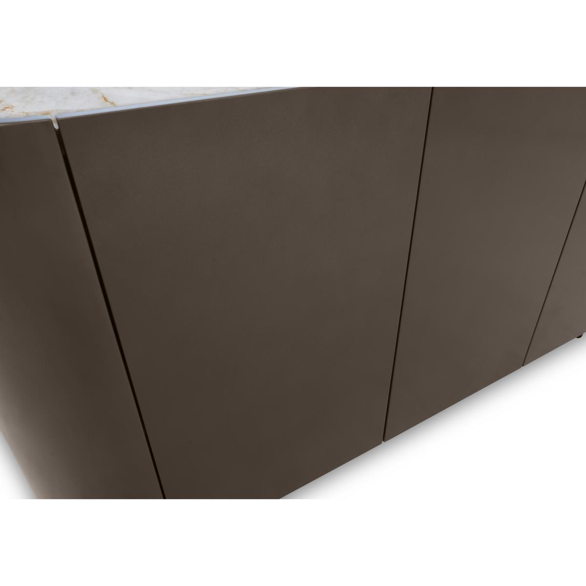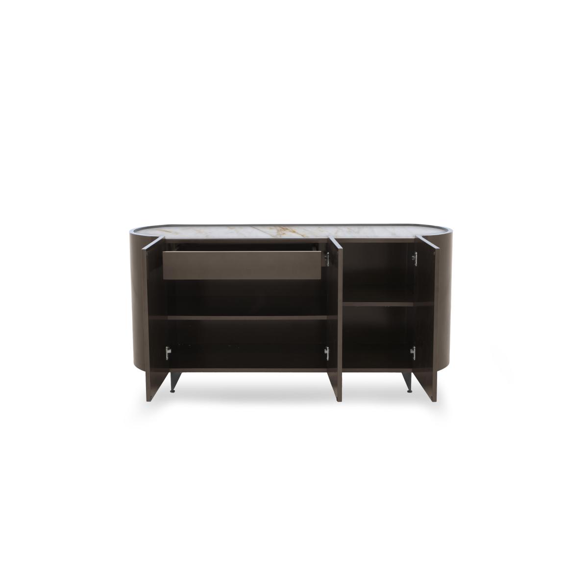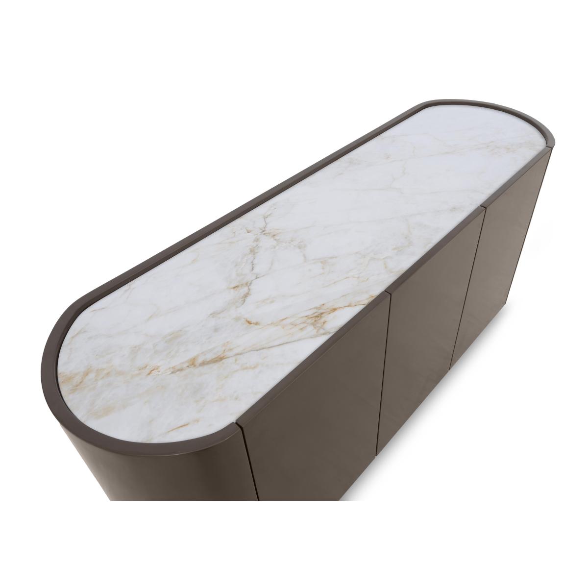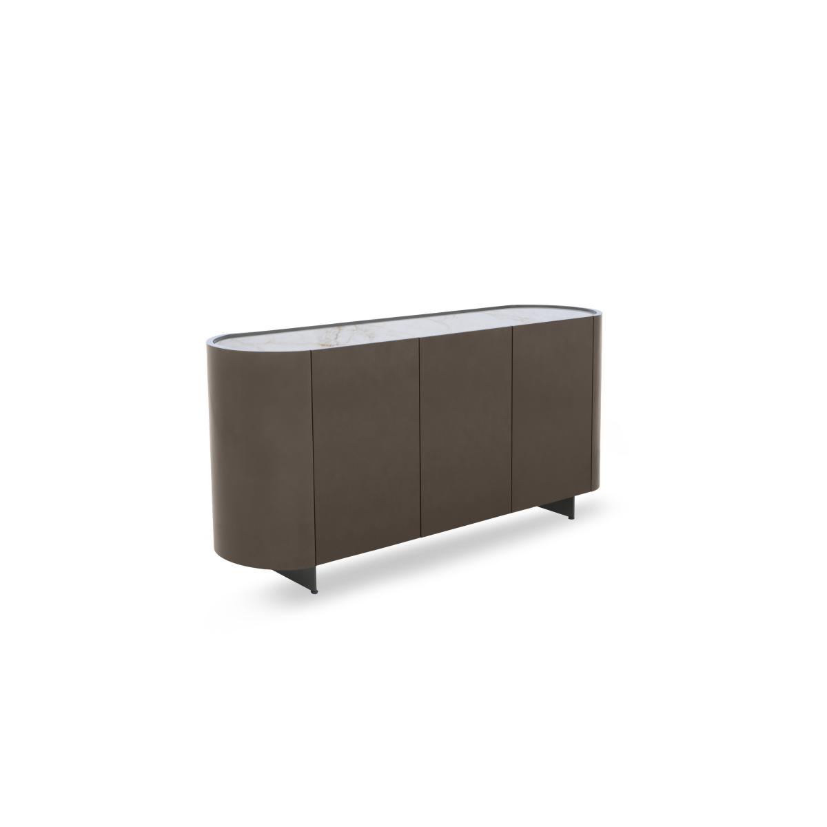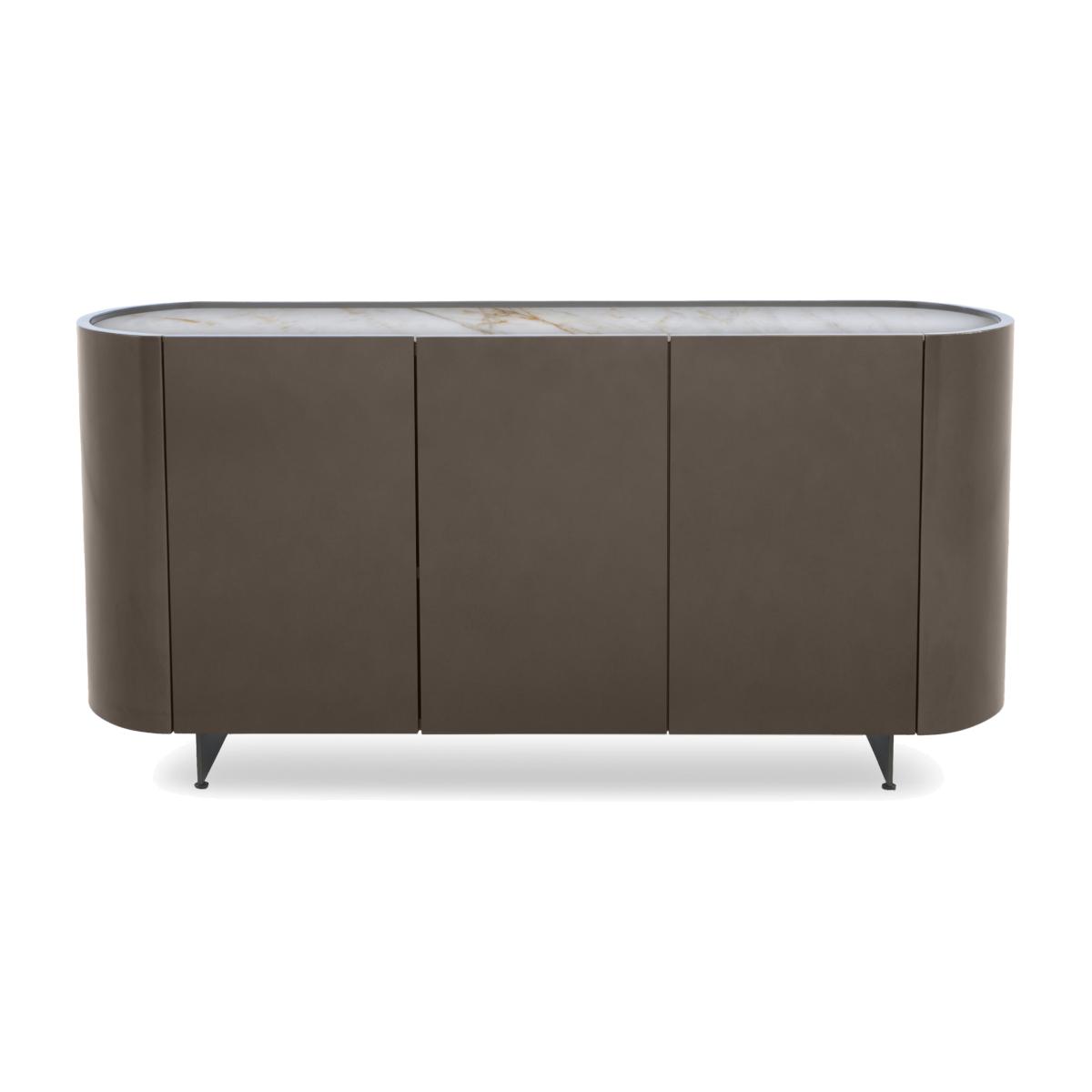 Our Perla range takes everything we love about statement dining style and gives it a new glam look. You’ll find surfaces finished with gorgeous ceramic imported from Italy, statement metal table bases and chair legs with a bronze-toned finish, and distinctive design elements like the oval-shaped dining table top, the sideboard’s curved silhouette and the swivel-top coffee table. Designed for real-life living, the super-comfy dining chairs have swivel bases that neatly return the chairs to their original position, and ceramic surfaces are bonded to tempered glass for easy cleaning and durability. Bring home singular glam style with the Perla range. This showstopping three-door sideboard has a glossy ceramic top, a statement bronze-toned frame and truly impressive storage capabilities. Why you'll love it Singular glam style with a gorgeous finish. Beautiful pearl-coloured Italian ceramic top with a gloss finish. Impressive proportions with distinctive curved ends. Bronze-coloured frame. Top has a dark bronze metal trim. Striking style and a practical finish makes this sideboard ideal for any home. Ceramic is heatproof and both scratch- and chip-resistant. The ceramic top is bonded to tempered glass for extra strength and durability. Spacious cupboard storage with soft-closing doors. There’s even a hidden drawer. This 3-door sideboard is part of our Perla range. What you need to know Single-door cupboard and double-door cupboard each have 1 fixed shelf. We recommend using coasters and placemats at all times. Easy to care for. Simply wipe with a clean damp cloth and dry with a soft duster. Do not use abrasive cleaning products. Item code: PERLSB--GLOS-001