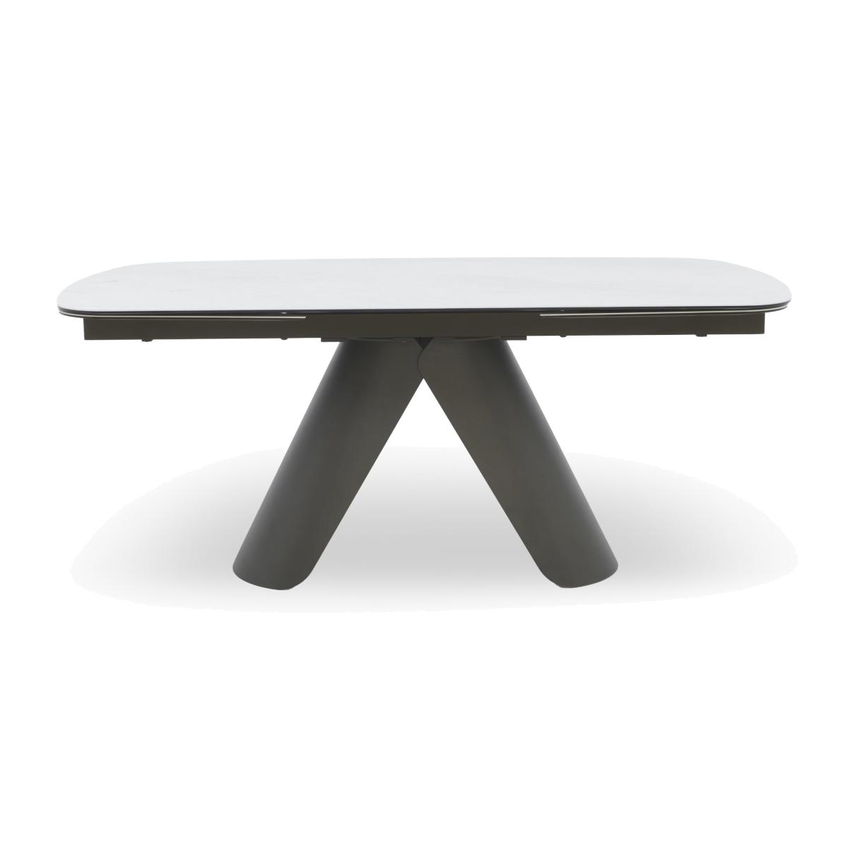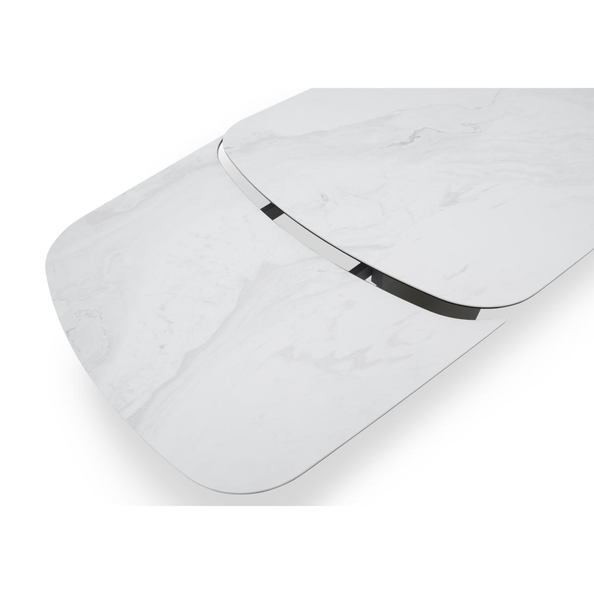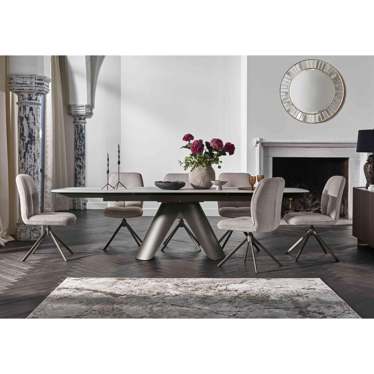Our Perla range takes everything we love about statement dining style and gives it a new glam look. You’ll find surfaces finished with gorgeous ceramic imported from Italy, statement metal table bases and chair legs with a bronze-toned finish, and distinctive design elements like the oval-shaped dining table top, the sideboard’s curved silhouette and the swivel-top coffee table. Designed for real-life living, the super-comfy dining chairs have swivel bases that neatly return the chairs to their original position, and ceramic surfaces are bonded to tempered glass for easy cleaning and durability. Bring home singular glam style with the Perla range. Bring drama to your dining room with this utterly unique extending dining table. With a beautiful oval-shaped ceramic top and statement metal base, it’s a showstopper. Why you'll love it Singular glam style with a gorgeous finish. Curvaceous oval dining table leads the way in bold modern design. Beautiful pearl-coloured Italian ceramic top. Extends in seconds to seat 10 – extra leaves pull out from the table ends. Absolutely stunning metal base has a dark bronze finish. Striking style and a practical finish makes this table perfect for any occasion. Ceramic is heatproof and both scratch- and chip-resistant. The ceramic top is bonded to tempered glass for extra strength and durability. This large extending dining table is part of our Perla range. What you need to know This large 180 cm dining table seats 8 closed and 10 when extended. This dining table is very heavy and should not be moved once in place. We recommend using coasters and placemats at all times. Easy to care for. Simply wipe with a clean damp cloth and dry with a soft duster. Do not use abrasive cleaning products.