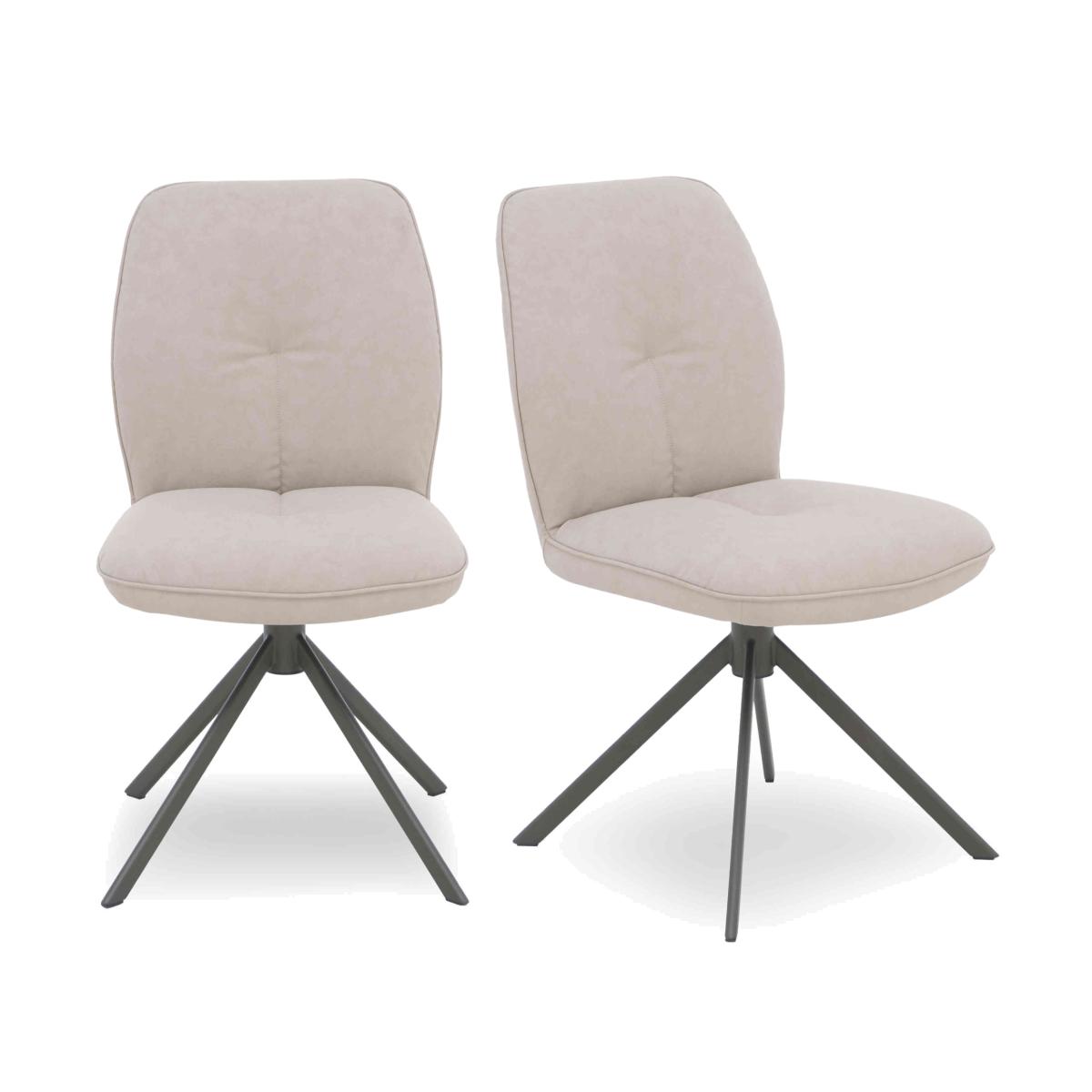 Our Perla range takes everything we love about statement dining style and gives it a new glam look. You’ll find surfaces finished with gorgeous ceramic imported from Italy, statement metal table bases and chair legs with a bronze-toned finish, and distinctive design elements like the oval-shaped dining table top, the sideboard’s curved silhouette and the swivel-top coffee table. Designed for real-life living, the super-comfy dining chairs have swivel bases that neatly return the chairs to their original position, and ceramic surfaces are bonded to tempered glass for easy cleaning and durability. Bring home singular glam style with the Perla range. With auto-return swivel bases, stylish bronze-coloured metal legs and soft faux leather upholstery, these modern dining chairs are beautifully finished. Set of two. Why you'll love it Glam and elegant style meets superb dining comfort. Well-cushioned seats with very supportive backs. Swivel mechanisms automatically return these chairs to their original position. Metal legs have a very stylish dark bronze finish. Soft faux leather upholstery in taupe. Simply stunning with a Perla ceramic extending dining table. Also available individually and in sets of 4 and 6 dining chairs. This pair of swivel dining chairs is part of our Perla range. What you need to know Metal frames and legs. Cushioned with foam.