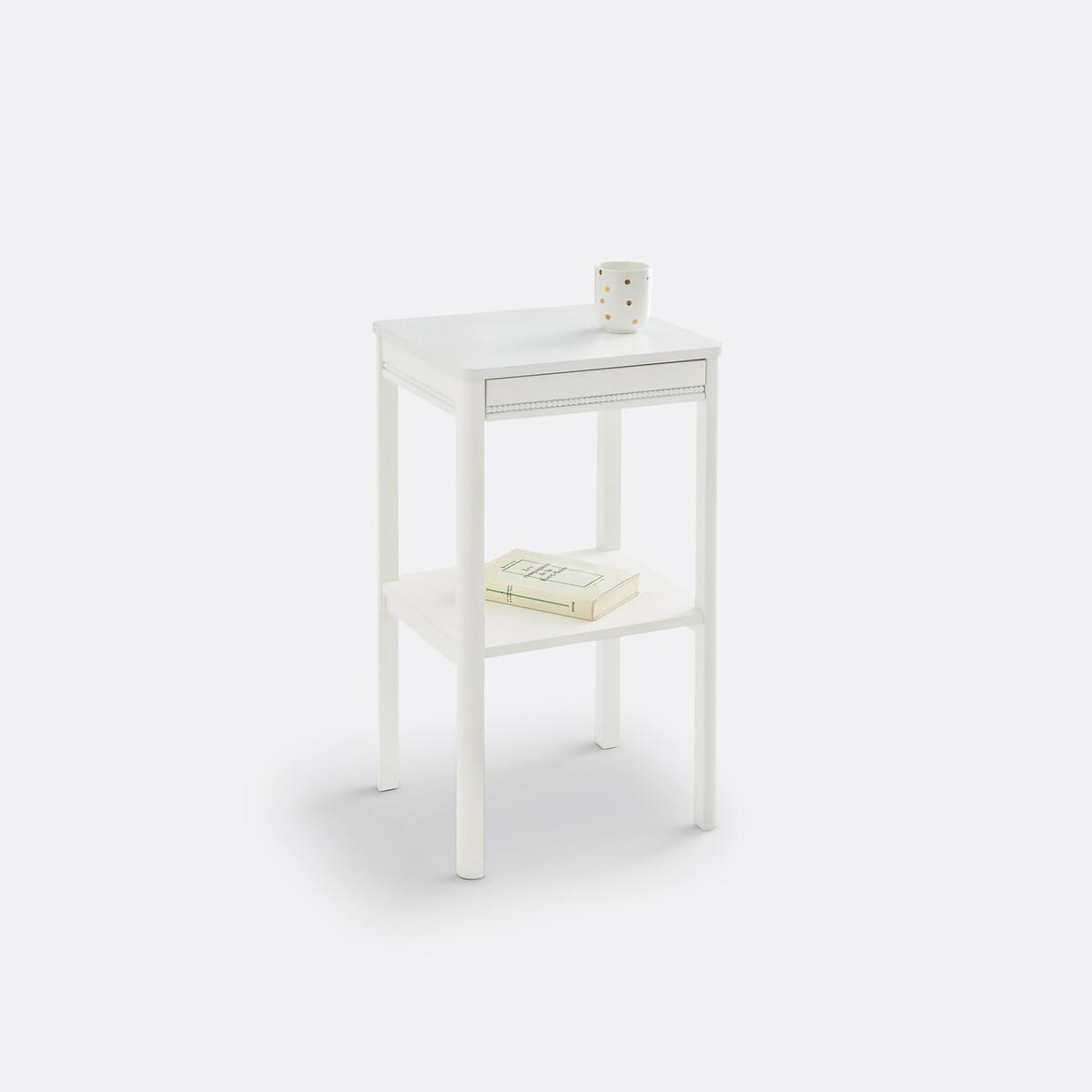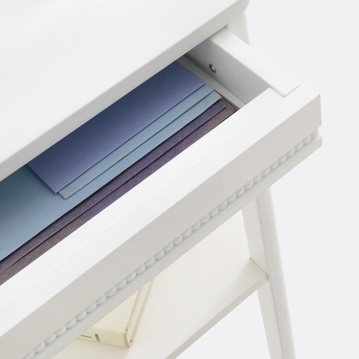 The Perle bedside table is a sleek, versatile piece that works well in both modern and traditional interiors. I love its clean lines and compact form, making it perfect for smaller spaces or minimalist bedrooms. It’s especially great styled with soft, neutral colours to highlight its understated elegance, but can also be paired with bold accents for contrast. Practical tips include using the top surface for a table lamp or a small favourite ornament, while the lower shelf is handy for books or a cosy throw. Its simple design allows it to blend seamlessly into various schemes, providing both functionality and a refined touch to your bedside setup.