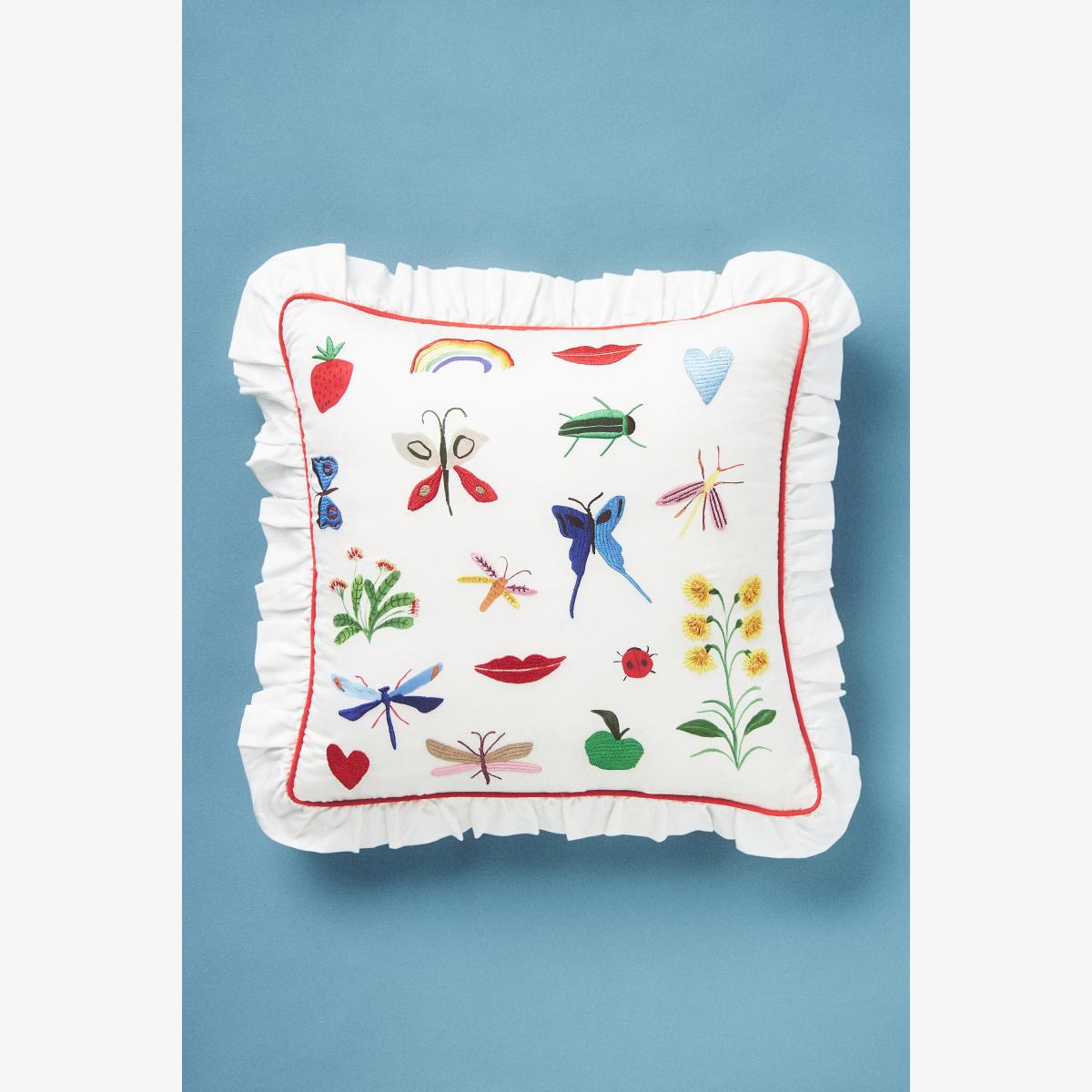 Designed exclusively for Anthropologie by Pernille Rosenkilde, this embroidered throw pillow offers boundless charm to every seat. * Exclusively for Anthropologie * By Pernille Rosenkilde * 100% Hand-embroidered Modal; Cotton, Rayon lining * Spot clean or dry clean * Imported