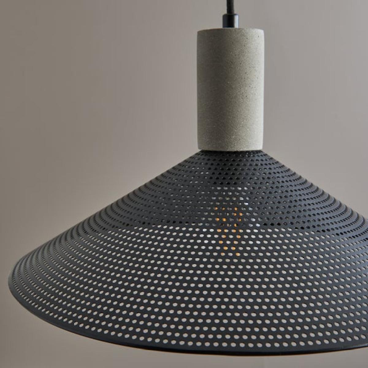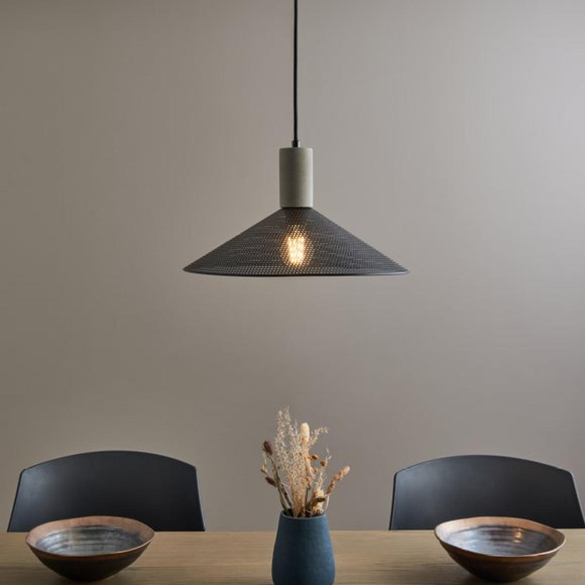 * Industrial-Inspired Look & Design * Eye-Catching Metal Mesh Shades * Adjustable Height - Tailored Ambience * Dimmable Compatible - Requires Dimmable Bulb & Switch * Matching Items Available Separately Add industrial flair with the Perry Mesh Industrial Adjustable Ceiling Light. Featuring a matt black finish, metal mesh shades, and a concrete-effect detail, it’s a bold addition to any room. Adjustable in height and dimmable when paired with dimmable bulbs for tailored lighting. Matching items available separately to complete the look!