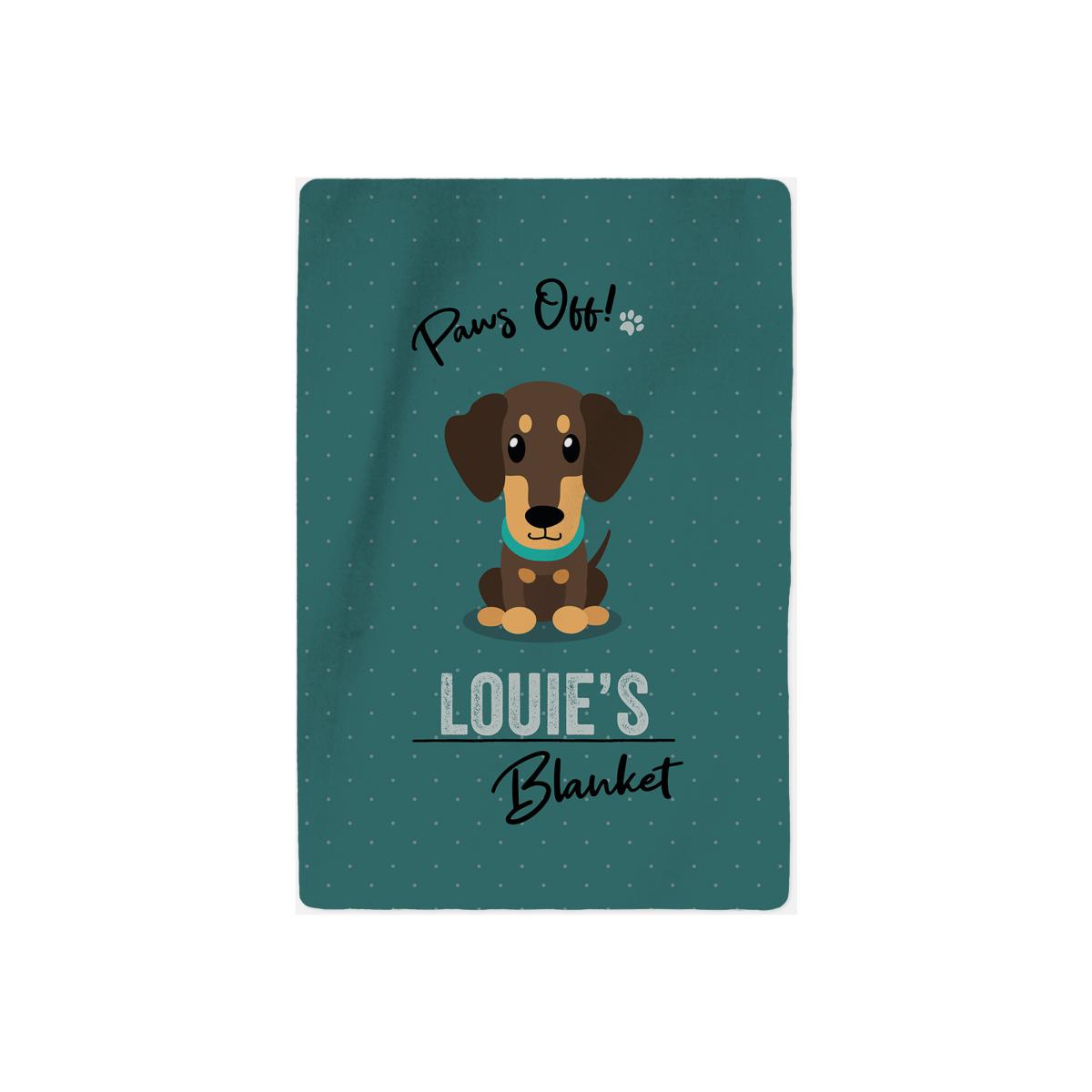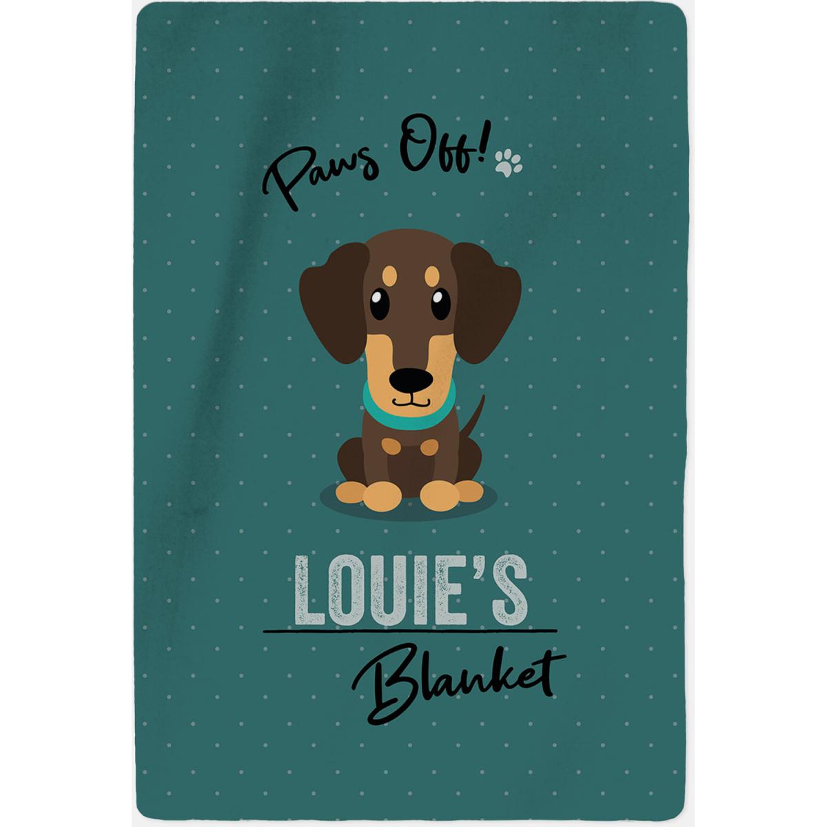 Ruff day This luxurious Brown Dachshund blanket is double layered and lined with a super-soft sherpa fleece material to provide super comfort at the end of a long day chasing tail. Not only that, but this blanket comes with our Brown Dachshund icon, paws off text and can be personalised with your Dachshund's name, so everyone knows who the blanket belongs to.