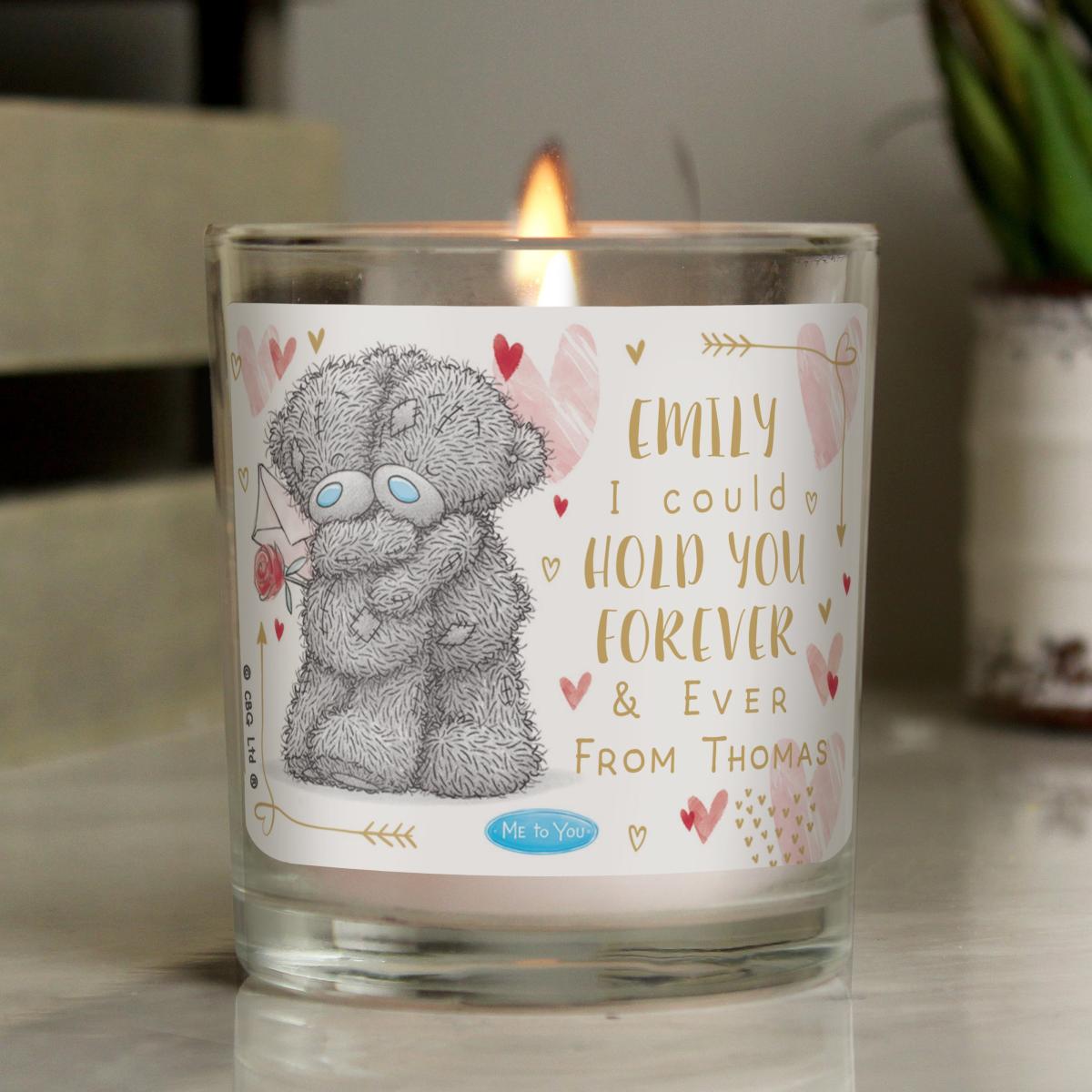 * Please see below on how to personalise your candle:* Name: Up to 12 characters. * Message line: Up to 20 characters (fixed upper case). * " I could hold you forever & ever" is fixed text. * Material: Glass.* Approximately 20 hours burn time. A special personalised gift for the one you love.**How to personalise your product:**1. Place your order2. You will receive an email from dunelm@personalisedmemento. co. uk within 1 hour to add your personalised message. If not received, please check your junk folder.3. Once received, follow the link within the email.4. Type your message into the fields on screen and click on the preview button to review the personalisation.5. Once checked and happy, click submit.6. Production of the order will commence.**Please note:*** The content on a personalised product will be produced exactly as you enter it, including spelling and capitalisation. Please ensure that all details, especially the personalised text, are correct before clicking submit.* Accents, special characters and emojis are not accepted.* Once the personalisation has been submitted, the order cannot be amended or cancelled. * If the personalisation is not submitted within 3 days, the order will be automatically cancelled. * We do not permit personalisation that infringes copyright laws, is indecent or offensive, or contains language deemed to be abusive, threatening, or defamatory. Full content rules can be viewed in the [terms and conditions](https://www. dunelm. com/info/help/personalised-goods-terms-and-conditions). Orders that do not follow these rules will be refused. By ordering a personalised product, you are agreeing that your details (name and contact details, including address) and the details that you provide of any other party, such as the recipient of the personalised product, can be shared with our third party supplier who provides the personalisation service only for the purposes of completing the personalisation service and delivering the product to you or the recipient. Our Privacy Policy is here: [Privacy Policy | Dunelm](https://www. dunelm. com/info/help/privacy).