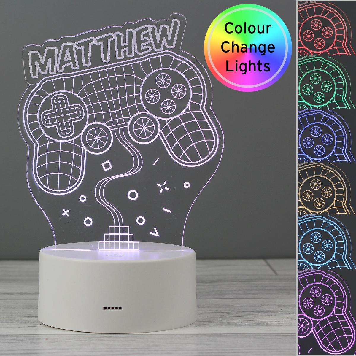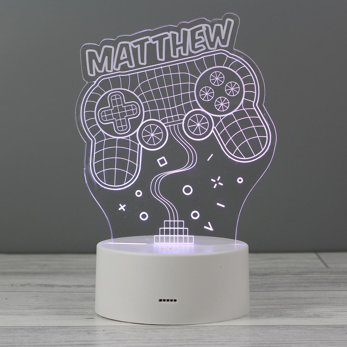 The perfect addition to any gamers set up, comprising of a sturdy base with a LED light which you can personalise with a name of your choice. To change the colour of the LED light, simply touch the base to pick a colour of your choice. These can be set to change constantly if all the colours are your favourite, or you can pick one specific colour! Personalise with a name of up to 12 characters long! Disclaimer:Please do not use a lightening USB cable as this may interfere with the functionality How to personalise your product: Please note: By ordering a personalised product, you are agreeing that your details (name and contact details, including address) and the details that you provide of any other party, such as the recipient of the personalised product, can be shared with our third party supplier who provides the personalisation service only for the purposes of completing the personalisation service and delivering the product to you or the recipient. Our Privacy Policy is here: Privacy Policy | Dunelm.