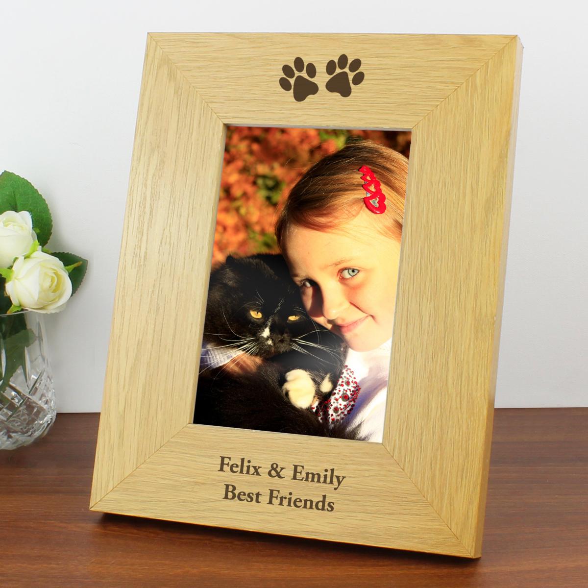 Personalised Paw Prints Light Wood Portrait Photo Frame Natural