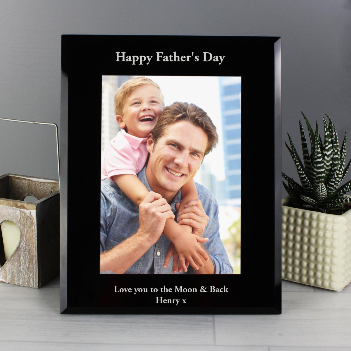 * See below how to personalise your frame* Personalise with a line above the photo (25 characters) and two lines below the photo (30 characters each)* Frame is Portrait and holds a 7" x 5" print* Frame comes with a stand, no wall fittings included* Avoid using block capitals for personalised text The Personalised Portrait Black Glass Photo Frame adds a touch of elegance to any occasion. Personalise it with your unique message and capture your special moments in style.**How to personalise your product:**1. Place your order2. You will receive an email from dunelm@personalisedmemento. co. uk within 1 hour to add your personalised message. If not received, please check your junk folder.3. Once received, follow the link within the email.4. Type your message into the fields on screen and click on the preview button to review the personalisation.5. Once checked and happy, click submit.6. Production of the order will commence.**Please note:*** The content on a personalised product will be produced exactly as you enter it, including spelling and capitalisation. Please ensure that all details, especially the personalised text, are correct before clicking submit.* Accents, special characters and emojis are not accepted.* Once the personalisation has been submitted, the order cannot be amended or cancelled. * If the personalisation is not submitted within 3 days, the order will be automatically cancelled. * We do not permit personalisation that infringes copyright laws, is indecent or offensive, or contains language deemed to be abusive, threatening, or defamatory. Full content rules can be viewed in the [terms and conditions](https://www. dunelm. com/info/help/personalised-goods-terms-and-conditions). Orders that do not follow these rules will be refused. By ordering a personalised product, you are agreeing that your details (name and contact details, including address) and the details that you provide of any other party, such as the recipient of the personalised product, can be shared with our third party supplier who provides the personalisation service only for the purposes of completing the personalisation service and delivering the product to you or the recipient. Our Privacy Policy is here: [Privacy Policy | Dunelm](https://www. dunelm. com/info/help/privacy).
