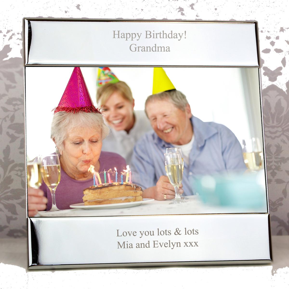* See below how to personalise your frame* Personalise with 4 lines of 20 characters each (two at the top and two at the bottom)* Holds a 6" x 4" photo* Avoid using block capitals for personalised text The Personalised Silver Landscape Photo Frame is a fantastic choice for creating a unique gift. Personalise it with your message, making your memories shine in this elegant frame.**How to personalise your product:**1. Place your order2. You will receive an email from dunelm@personalisedmemento. co. uk within 1 hour to add your personalised message. If not received, please check your junk folder.3. Once received, follow the link within the email.4. Type your message into the fields on screen and click on the preview button to review the personalisation.5. Once checked and happy, click submit.6. Production of the order will commence.**Please note:*** The content on a personalised product will be produced exactly as you enter it, including spelling and capitalisation. Please ensure that all details, especially the personalised text, are correct before clicking submit.* Accents, special characters and emojis are not accepted.* Once the personalisation has been submitted, the order cannot be amended or cancelled. * If the personalisation is not submitted within 3 days, the order will be automatically cancelled. * We do not permit personalisation that infringes copyright laws, is indecent or offensive, or contains language deemed to be abusive, threatening, or defamatory. Full content rules can be viewed in the [terms and conditions](https://www. dunelm. com/info/help/personalised-goods-terms-and-conditions). Orders that do not follow these rules will be refused. By ordering a personalised product, you are agreeing that your details (name and contact details, including address) and the details that you provide of any other party, such as the recipient of the personalised product, can be shared with our third party supplier who provides the personalisation service only for the purposes of completing the personalisation service and delivering the product to you or the recipient. Our Privacy Policy is here: [Privacy Policy | Dunelm](https://www. dunelm. com/info/help/privacy).