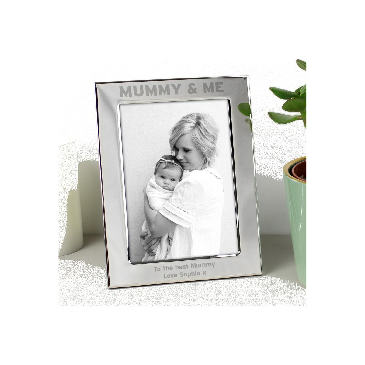 * See below how to personalise your frame* Personalise with 2 lines at the bottom, up to 30 characters each* 'Mummy & Me' is fixed text* Holds a 7" x 5" photograph* Not suitable for wall hanging* Material: Aluminium* Avoid using block capitals for personalised text The Personalised Silver Mummy and Me Portrait Photo Frame is a beautiful way to celebrate the special bond between a mother and child. Personalise it with your message, creating a cherished keepsake.**How to personalise your product:**1. Place your order2. You will receive an email from dunelm@personalisedmemento. co. uk within 1 hour to add your personalised message. If not received, please check your junk folder.3. Once received, follow the link within the email.4. Type your message into the fields on screen and click on the preview button to review the personalisation.5. Once checked and happy, click submit.6. Production of the order will commence.**Please note:*** The content on a personalised product will be produced exactly as you enter it, including spelling and capitalisation. Please ensure that all details, especially the personalised text, are correct before clicking submit.* Accents, special characters and emojis are not accepted.* Once the personalisation has been submitted, the order cannot be amended or cancelled. * If the personalisation is not submitted within 3 days, the order will be automatically cancelled. * We do not permit personalisation that infringes copyright laws, is indecent or offensive, or contains language deemed to be abusive, threatening, or defamatory. Full content rules can be viewed in the [terms and conditions](https://www. dunelm. com/info/help/personalised-goods-terms-and-conditions). Orders that do not follow these rules will be refused. By ordering a personalised product, you are agreeing that your details (name and contact details, including address) and the details that you provide of any other party, such as the recipient of the personalised product, can be shared with our third party supplier who provides the personalisation service only for the purposes of completing the personalisation service and delivering the product to you or the recipient. Our Privacy Policy is here: [Privacy Policy | Dunelm](https://www. dunelm. com/info/help/privacy).