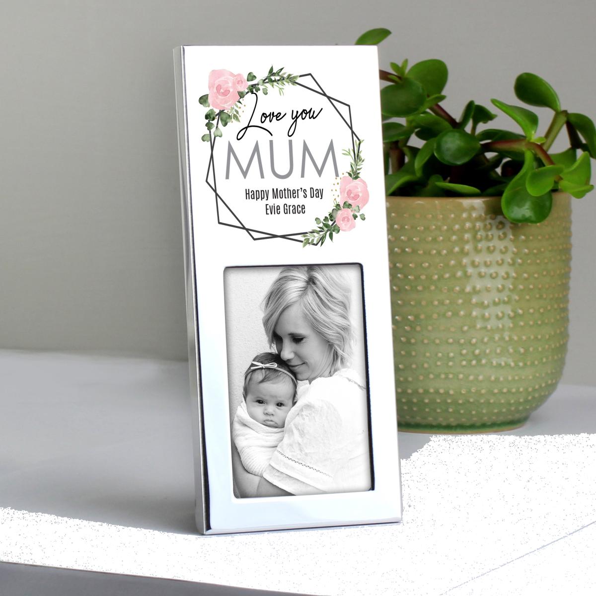 * See below how to personalise your frame* Perfect gift for any special lady* Personalise with a name or role (12 characters) and 2 message lines (25 characters each)* Name / Role in UPPERCASE, message as entered* 'Love You' is fixed text* Holds a 3" x 2" photo* Silver finish, material: Aluminium* Includes stand only, not wall-mountable The Personalised Small Abstract Rose Portrait Photo Frame is a charming way to show your love to a special lady. Add her name or role and two heartfelt message lines to create a unique and cherished gift.**How to personalise your product:**1. Place your order2. You will receive an email from dunelm@personalisedmemento. co. uk within 1 hour to add your personalised message. If not received, please check your junk folder.3. Once received, follow the link within the email.4. Type your message into the fields on screen and click on the preview button to review the personalisation.5. Once checked and happy, click submit.6. Production of the order will commence.**Please note:*** The content on a personalised product will be produced exactly as you enter it, including spelling and capitalisation. Please ensure that all details, especially the personalised text, are correct before clicking submit.* Accents, special characters and emojis are not accepted.* Once the personalisation has been submitted, the order cannot be amended or cancelled. * If the personalisation is not submitted within 3 days, the order will be automatically cancelled. * We do not permit personalisation that infringes copyright laws, is indecent or offensive, or contains language deemed to be abusive, threatening, or defamatory. Full content rules can be viewed in the [terms and conditions](https://www. dunelm. com/info/help/personalised-goods-terms-and-conditions). Orders that do not follow these rules will be refused. By ordering a personalised product, you are agreeing that your details (name and contact details, including address) and the details that you provide of any other party, such as the recipient of the personalised product, can be shared with our third party supplier who provides the personalisation service only for the purposes of completing the personalisation service and delivering the product to you or the recipient. Our Privacy Policy is here: [Privacy Policy | Dunelm](https://www. dunelm. com/info/help/privacy).