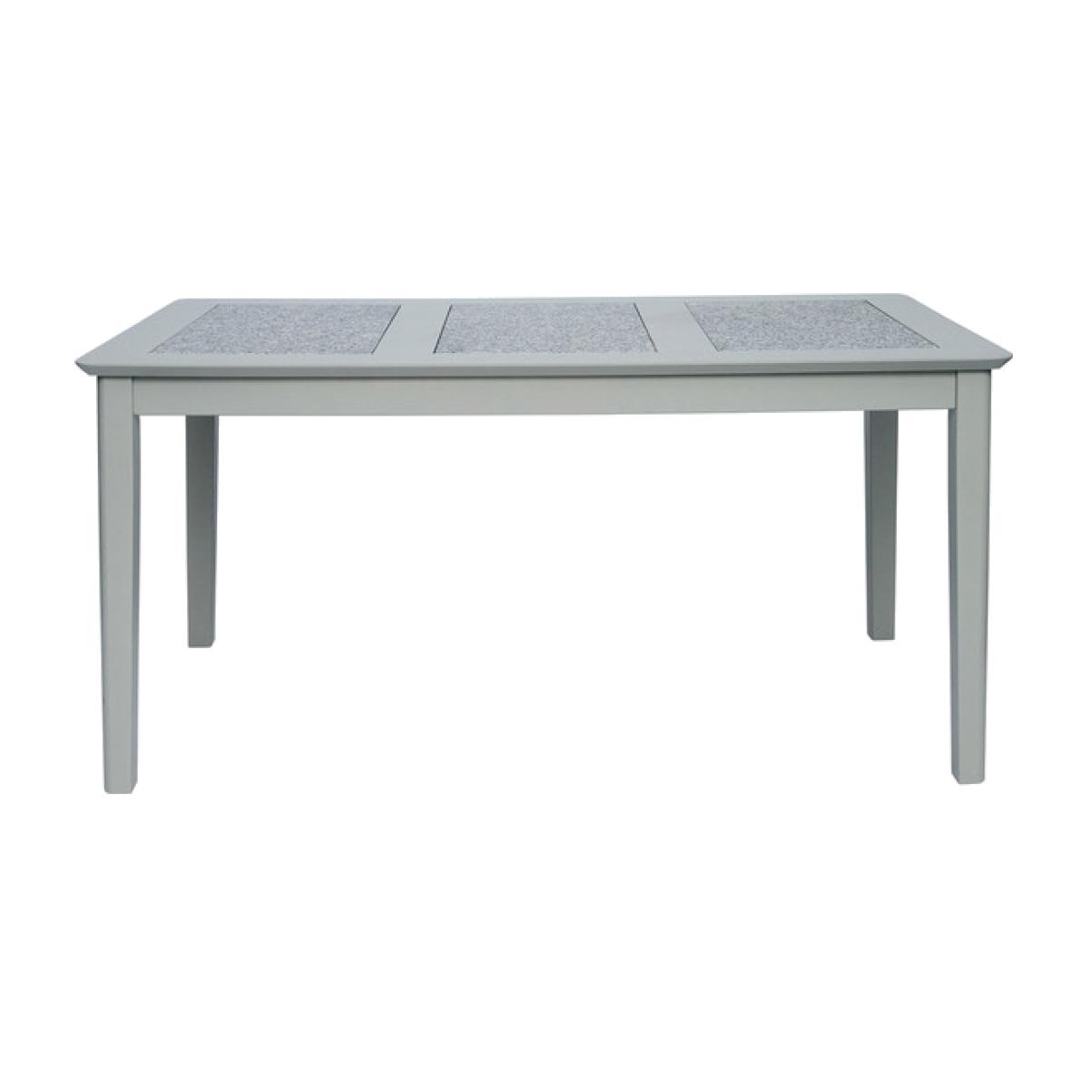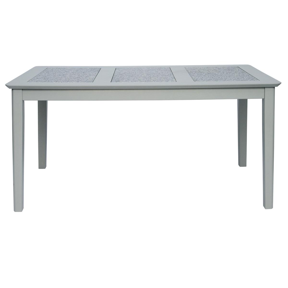 A really practical dining table finished in soft grey with a real stone inset top which is hardwearing and very easy to clean.