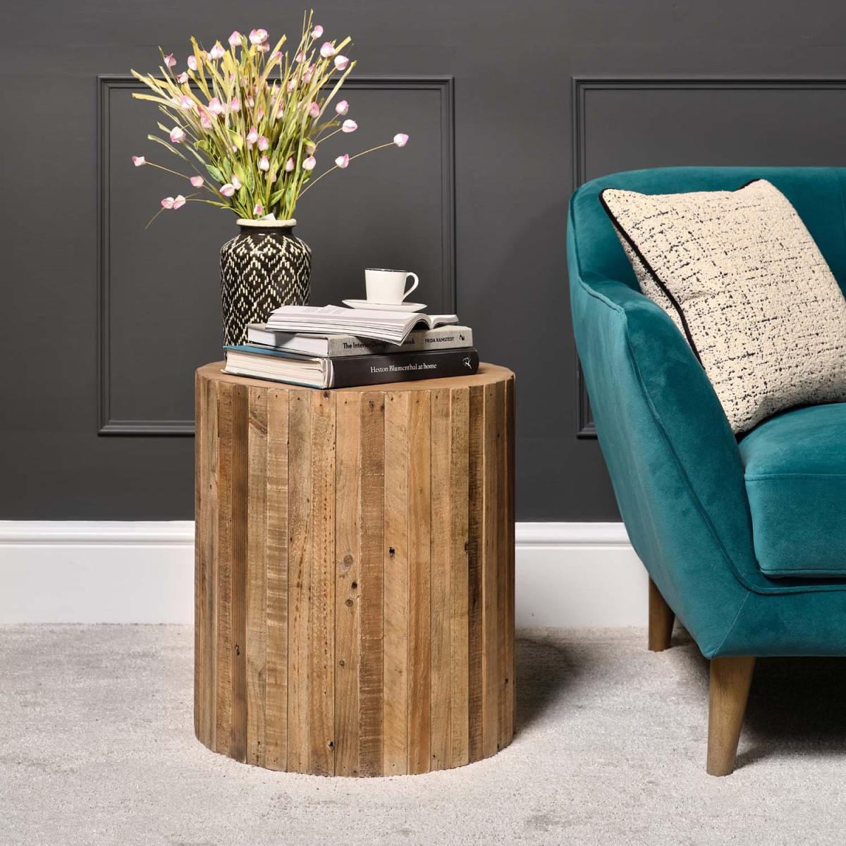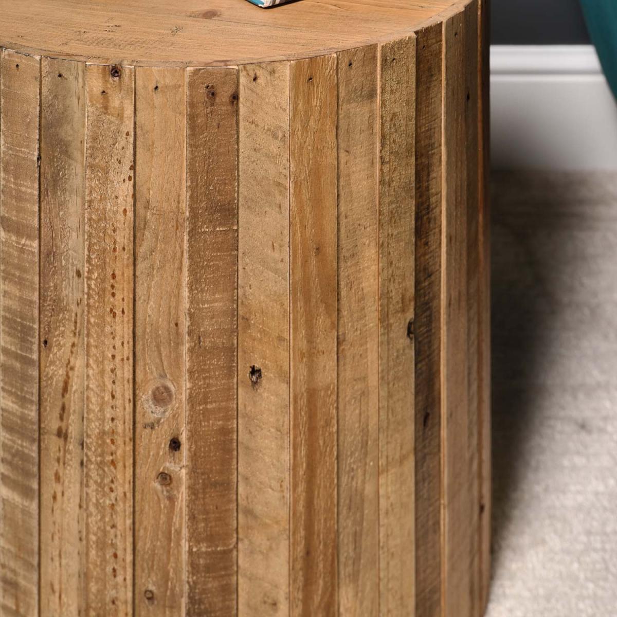 Bring the brand new reclaimed Perth collection to your living room. Made from reclaimed timber, this collection features unique characteristics in all pieces. Designed wit vertical wood in a circular shape, this lamp table is the perfect match with the Perth coffee table.