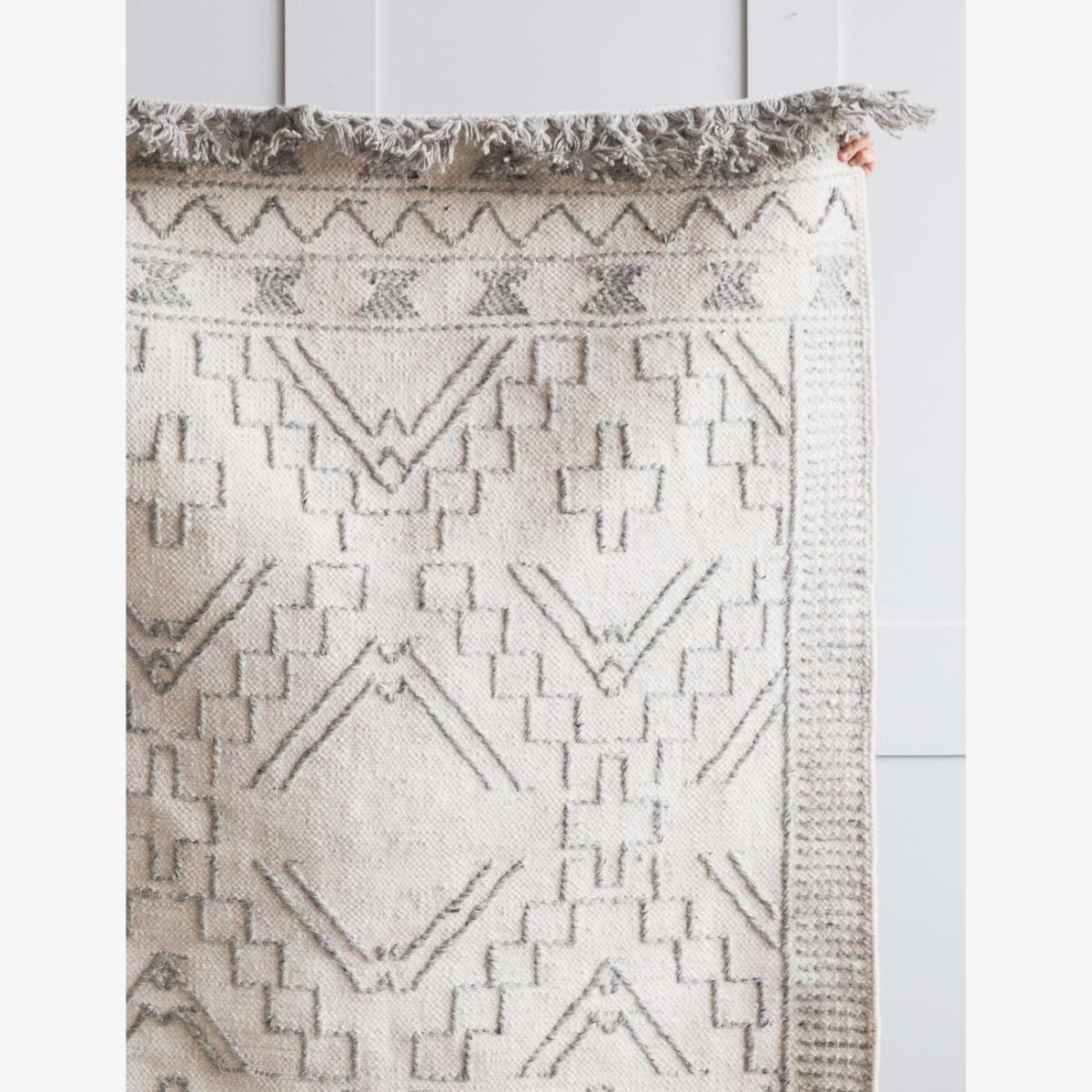 I love this rug for its subtle yet textured pattern, making it a versatile addition to both modern and boho interiors. The neutral tones ensure it works well in a variety of colour schemes, adding warmth without overpowering the space. It’s particularly great under a dining table or in a living area where durability is key, as the pattern helps to hide slight footmarks and wear. For styling tips, layer it with complementary textiles like throws and cushions for a cosy vibe, or pair it with wooden or matte black furniture for a contemporary look. Keep the setting minimal to let the weave and pattern truly stand out.