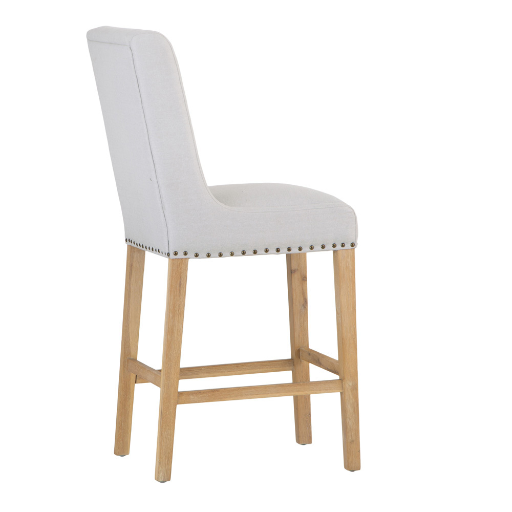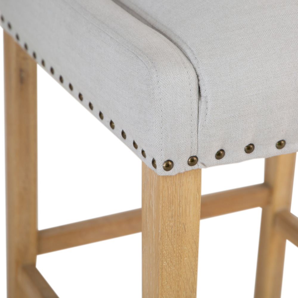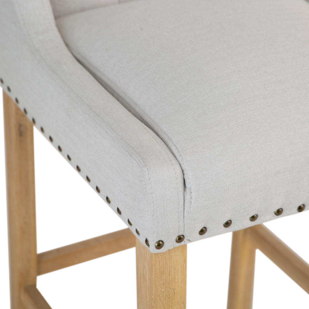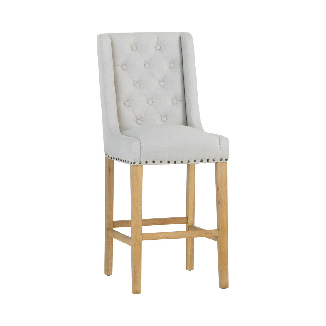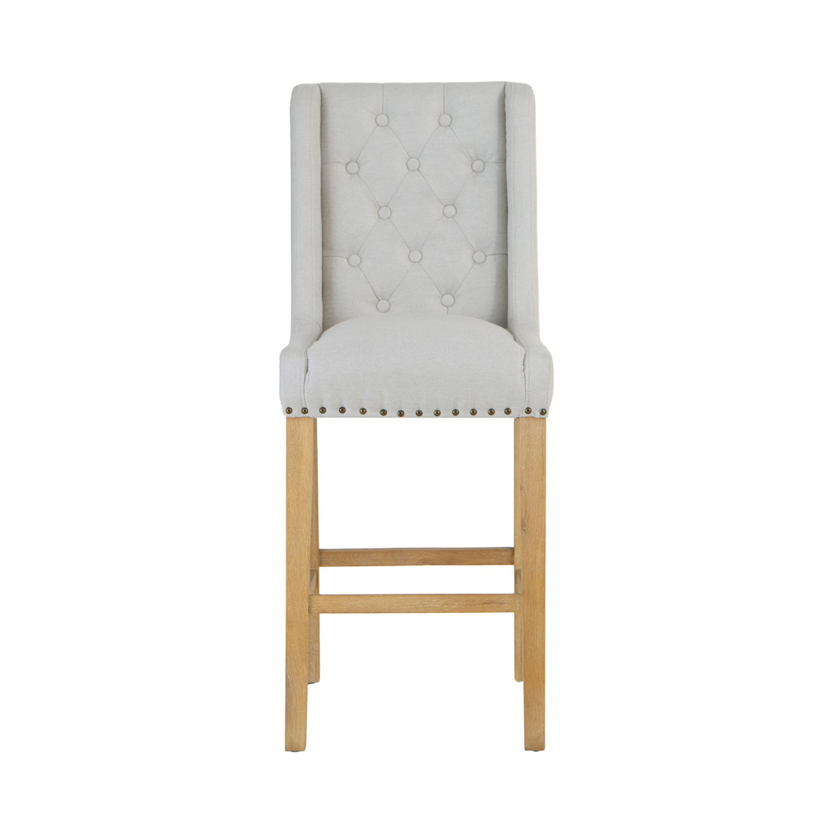 I love this stool because it combines classic elegance with a modern touch, thanks to the button back and subtle stud detailing. It works particularly well in interiors that blend contemporary and traditional styles, such as light-filled kitchen islands or cosy breakfast bars. To style it effectively, consider pairing it with soft, neutral tones or adding a contrasting pop of colour for visual interest. Its wooden legs give it a warm, inviting feel, making it versatile enough to suit both rustic and more polished schemes. Practical tip: these are excellent when grouped, so consider using a few around a breakfast counter for a chic, cohesive look.