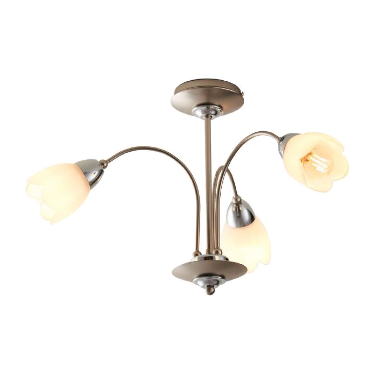 This medium semi flush light is one item within a wider range with a chrome and satin chrome effect and matt opal glass finish. This fitting is dimmable and suitable for use with LED lamps. Antique brass finish also available.