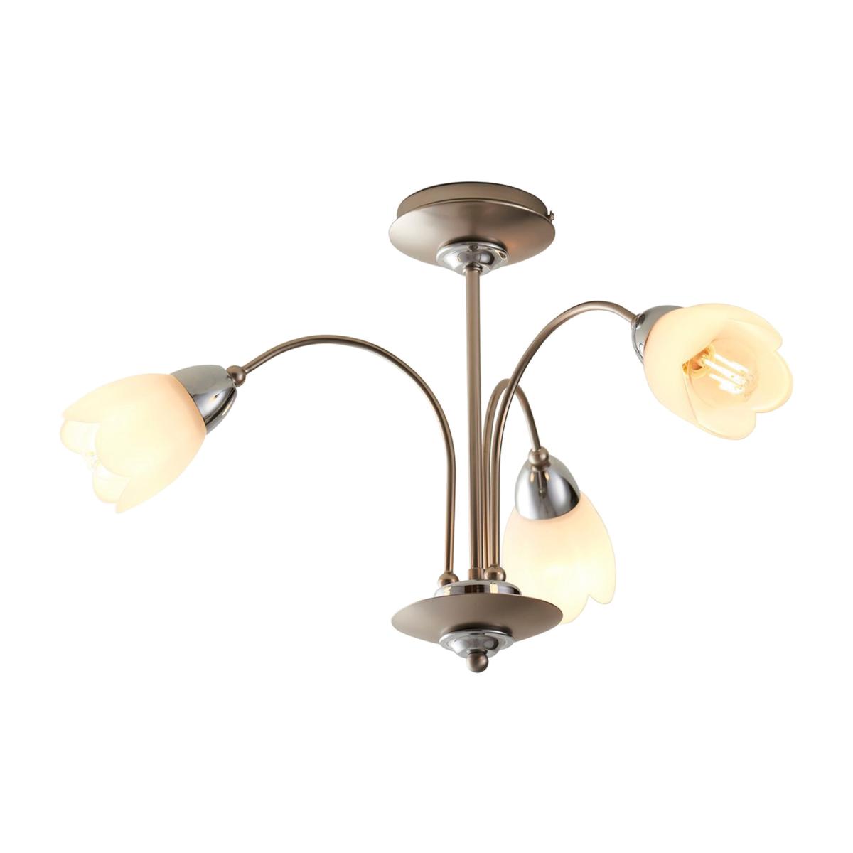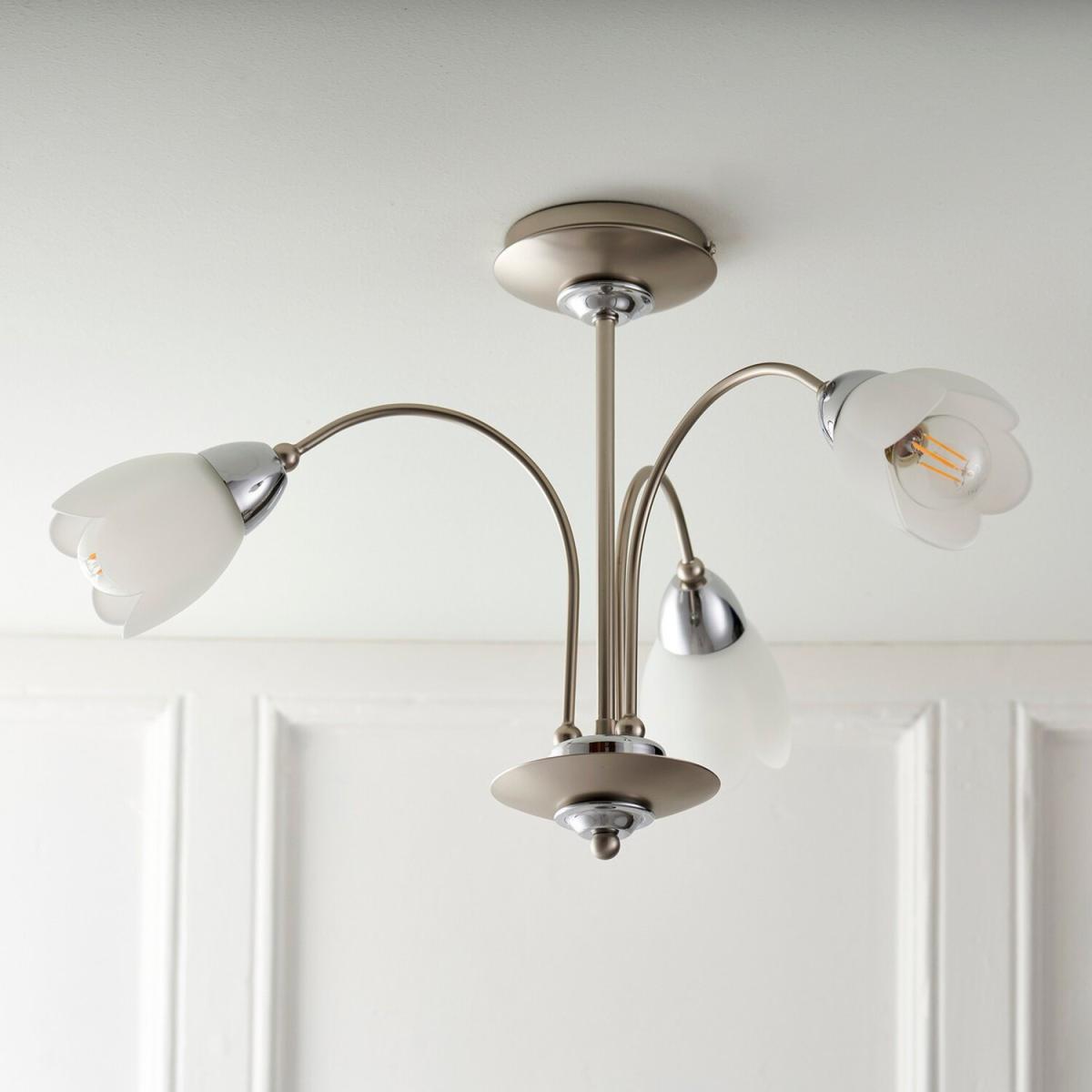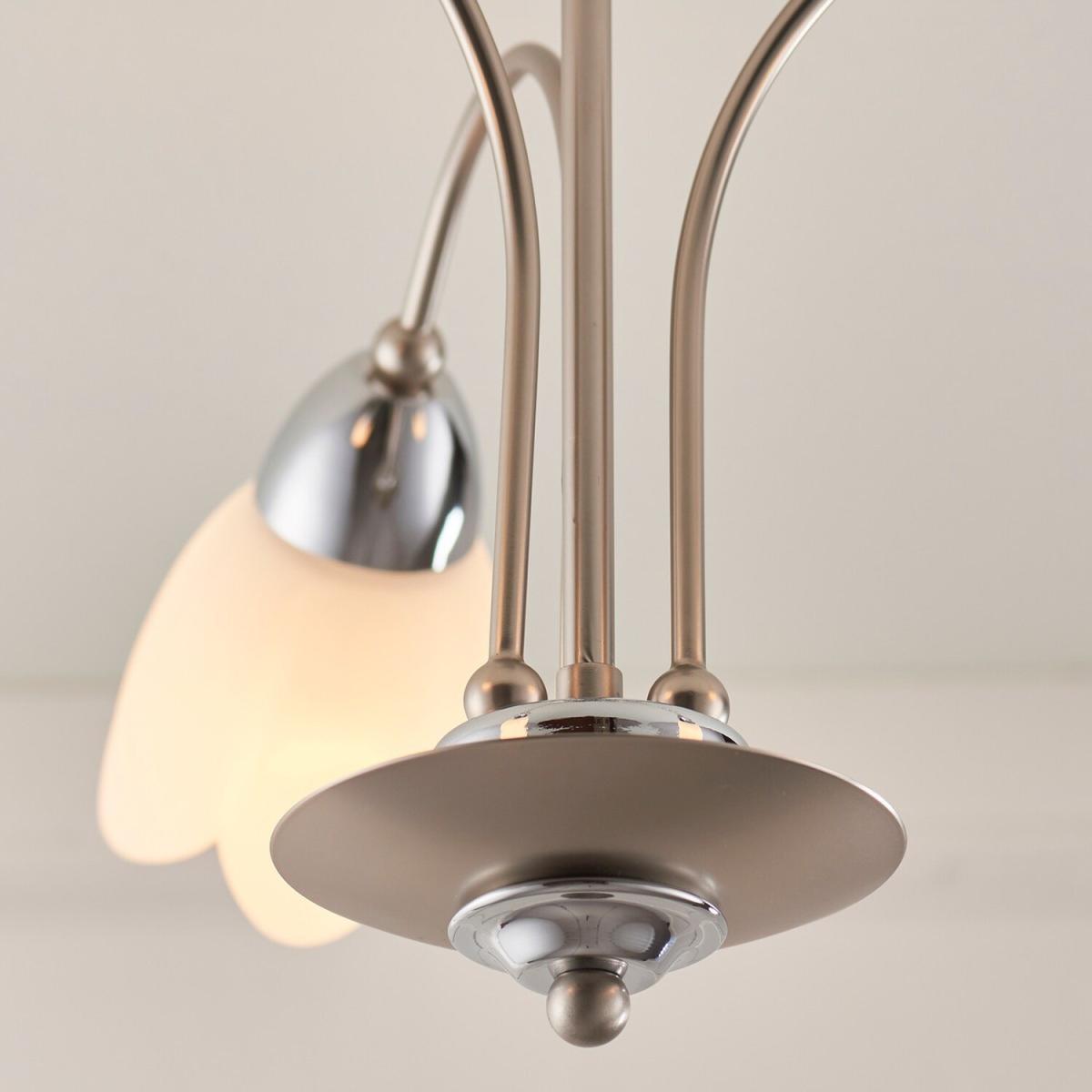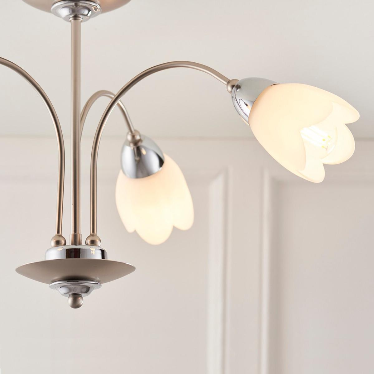 Petal 3 Light Semi Flush Multi Arm Ceiling Light Satin Chrome, Matt Opal Glass, - Satin Chrome