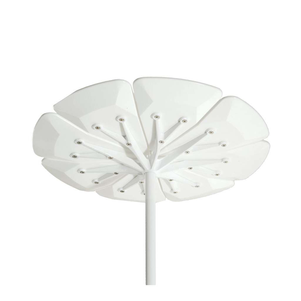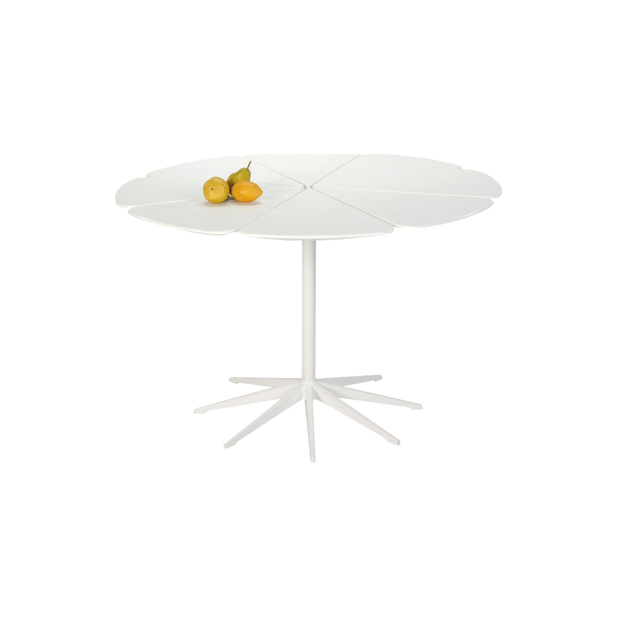 Inspired by the delicate Queen Anne's Lace flower, Richard Schultz designed the white Petal Outdoor Dining Table in 1960 to accompany the iconic Bertoia Chairs Harry Bertoia designed for Knoll. Showcasing a harmonic shape reminiscent of nature thanks to its flower-like top sprouting from the elegant pedestal base, the table features eight white 'petals'. Each crafted from polyurethane, the petals expand and contract according to the weather to ensure stability in all climates. The statement table top is held in place by beautifully crafted powder-coated cast aluminium supports and supported by a stainless steel stem in the same crisp white hue. A worldwide success since its release, the Petal Outdoor Dining Table was immediately made part of the MoMA Design Collection and has won several coveted accolades such as the 1967 International Design Award and the ICFF Editor's Award for Outside Furniture as recently as 2007.