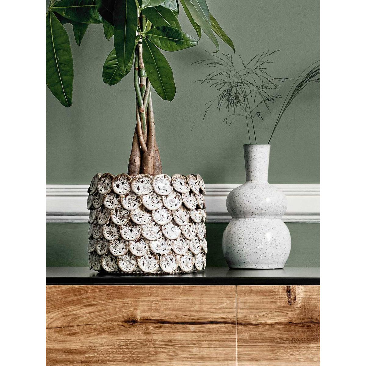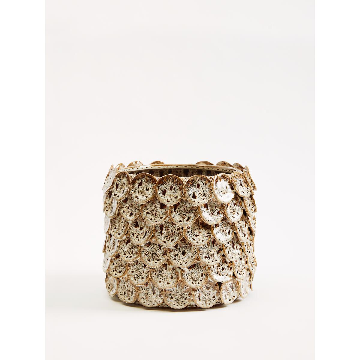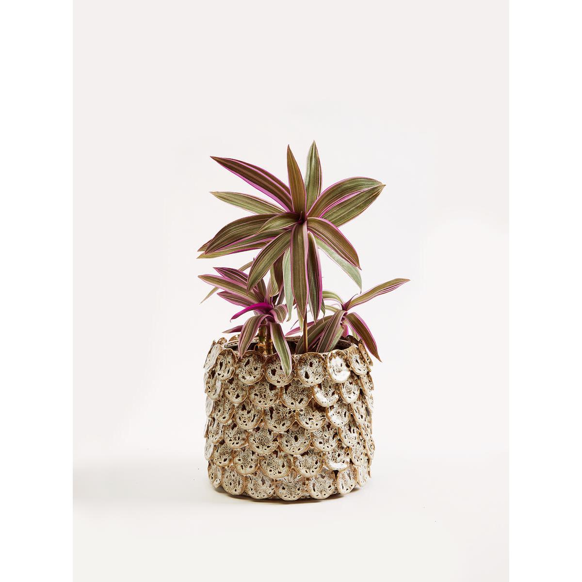 Individual petals, applied by hand, give this pot a sculptural,tiered effect. Finished with a speckled, reactive glaze for asubtly aged look, it is inspired by the stoneware seen in Soho House Berlin. Stoneware plant pot with hand-applied petals. Speckled, reactive glaze.
