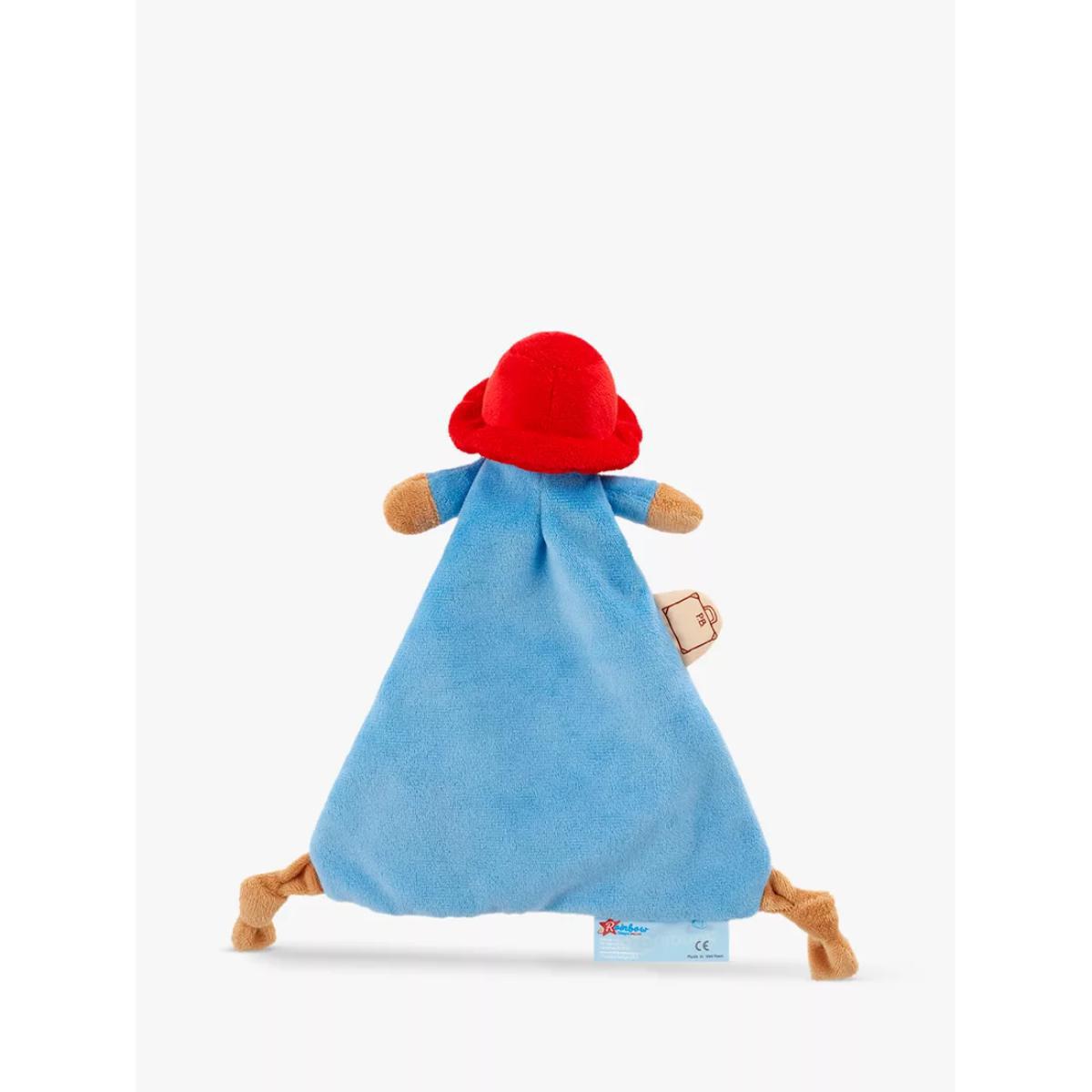 This cute Paddington comfort blanket from Peter Rabbit is made from baby soft plush to ensure it is as gentle as can be against baby's skin. Paddington wears his signature red hat and blue coat with embroidered detailing, and has a cute Paddington pattern on the underside and cute knot detailing on each corner. Suitable from birth this comfort blanket makes a great gift for newborns.