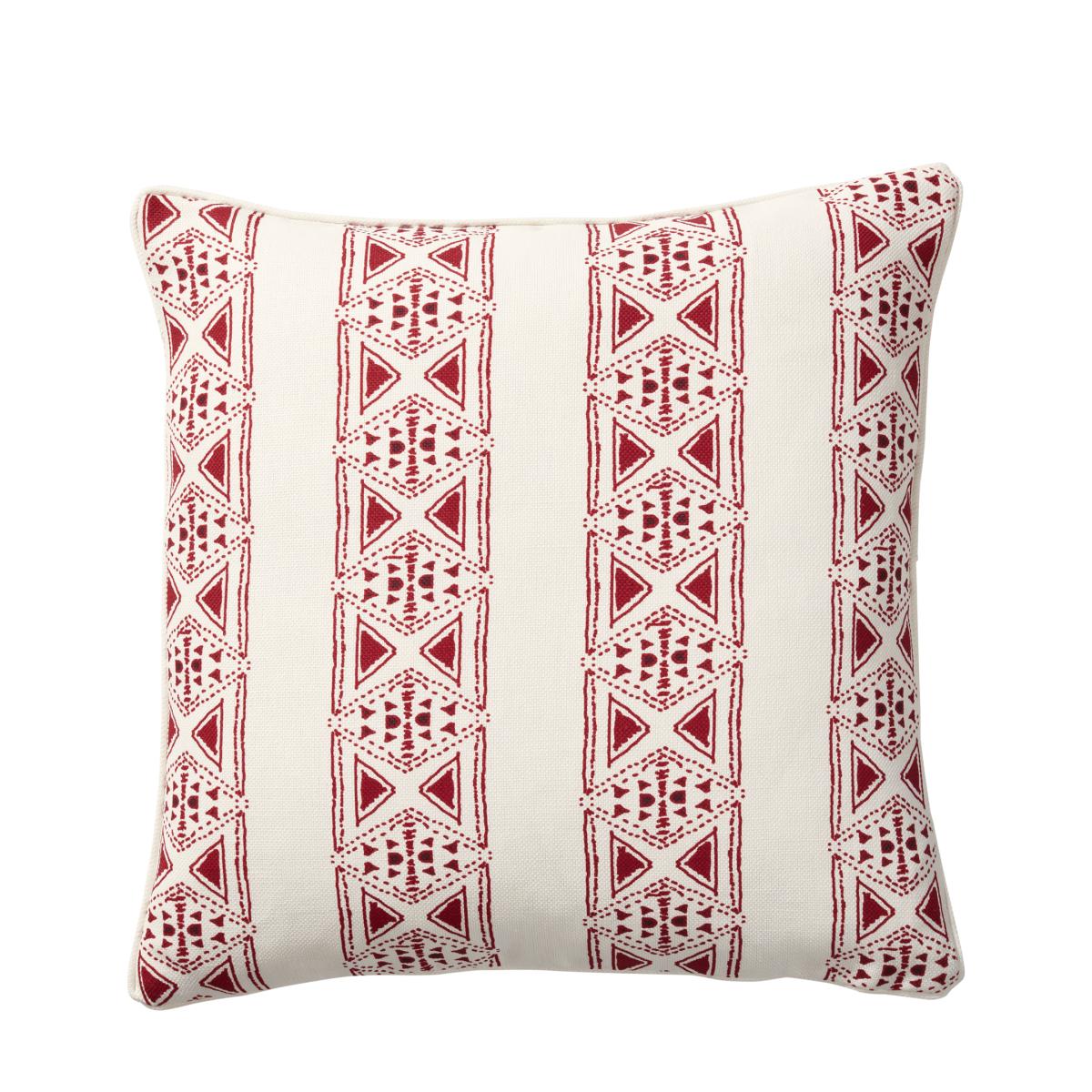 Taking inspiration from nature and featuring bold patterns originally hand-drawn by Annabel, the Rizal Collection has been made in England and includes designs printed on either a fine linen or a textured cotton linen base. Coloured in rich, complementary tones, Annabel's luxurious cushions are finished with beautiful, coordinating trims, which are also crafted in the UK. Petiole Cushion Cover - Grenache