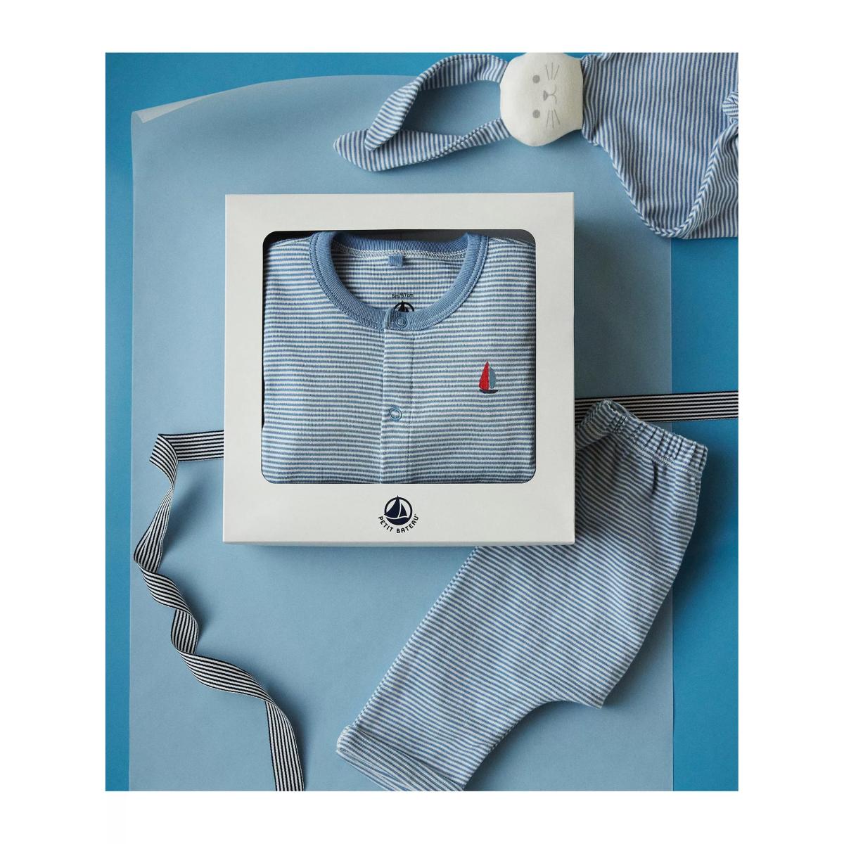 Making an adorable gift for new arrivals, this set includes a button-down top, matching trousers with an elasticated waistband and a bunny comforter toy. All made from the softest striped cotton that's gentle on delicate skin and presented in a gift box.