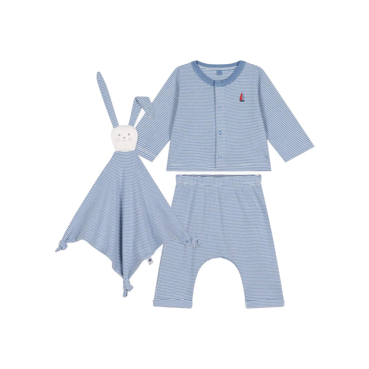 Petit Bateau Baby Cotton 3 Piece Outfit Set, Beach/Marshmallow