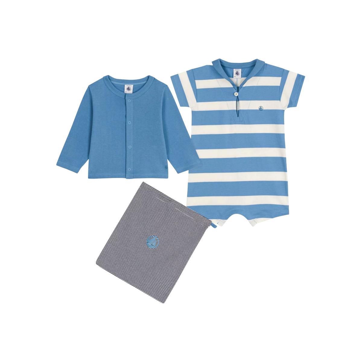 Petit Bateau Baby Cotton Cardigan & Romper Set, Alaska/Multico