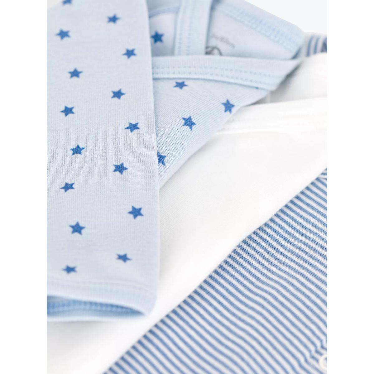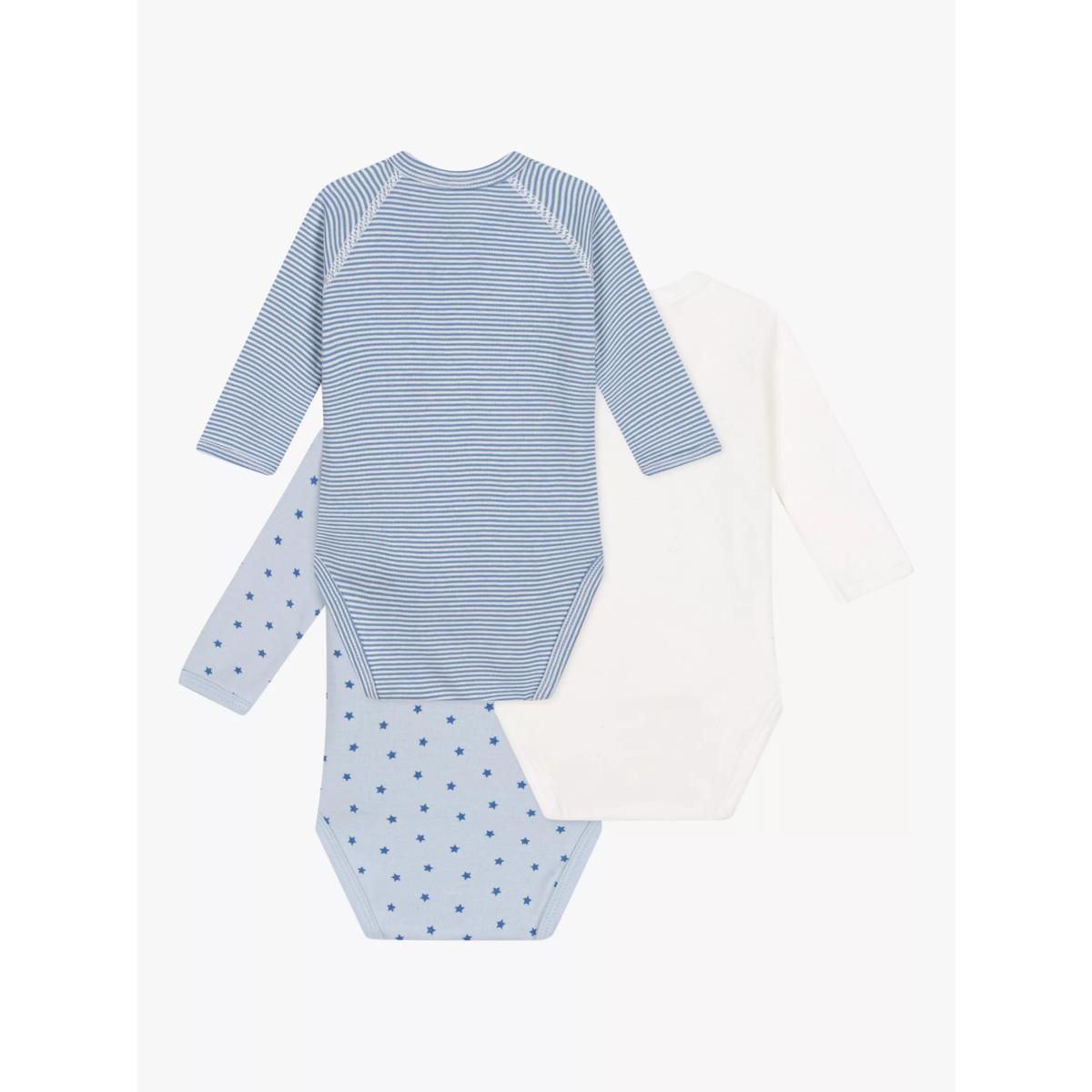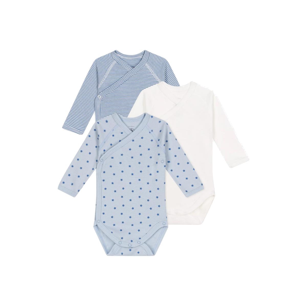 Petit Bateau Baby Cotton Wrapover Bodysuits, Pack of 3, Blue/White