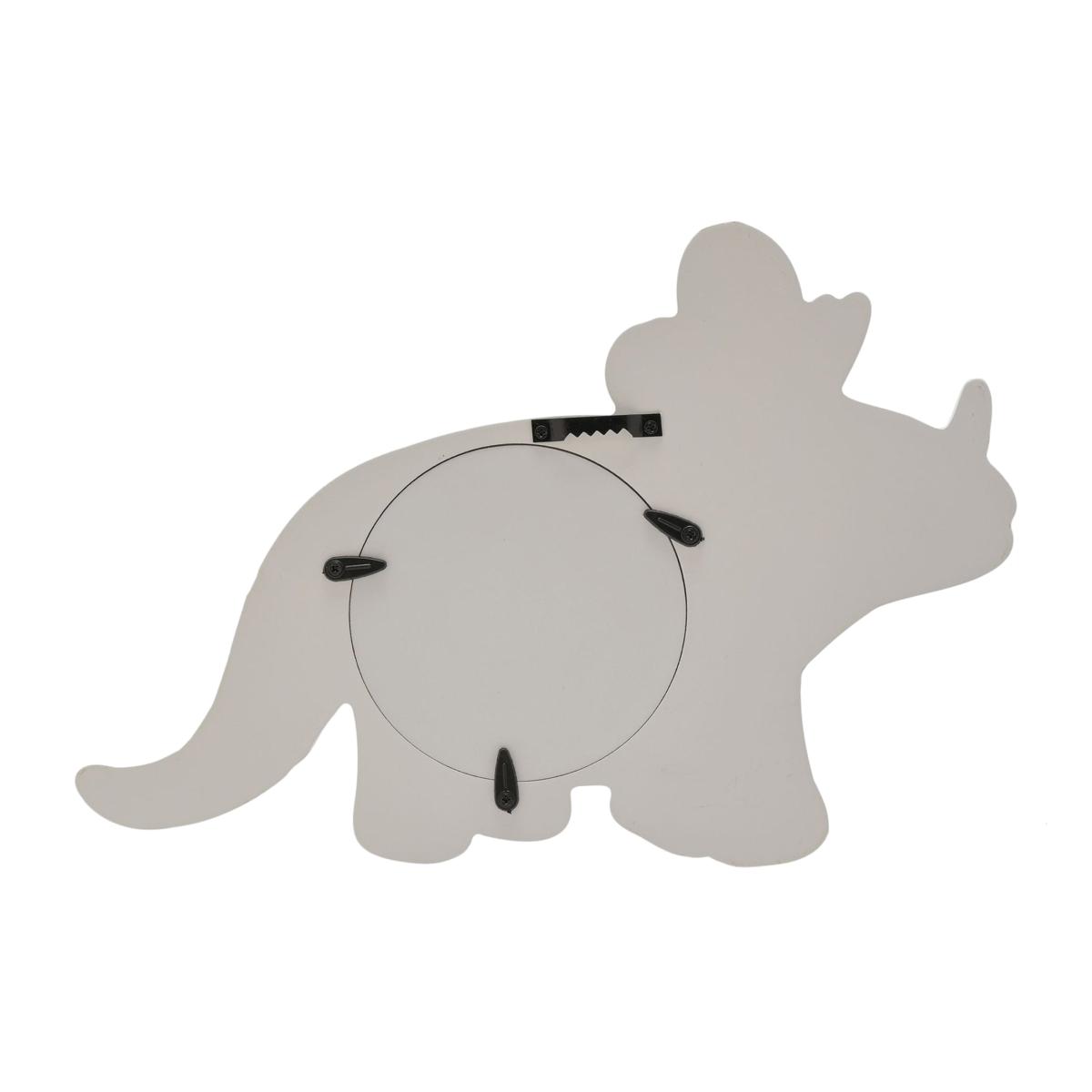* Dinosaur Themed Design* Triceratops-Shaped Frame* Designed for Wall Display* Soothing Yellow Colourway* Perfect Baby Shower Gift This adorable triceratops-shaped frame is the perfect way to make your baby's photo the highlight of any nursery! Designed for wall display, it's both fun and stylish, adding a touch of dino-delight to your little one's space. With its soothing pastel-yellow colourway and a cute circular window, this frame can be hung in either landscape or portrait orientation. It's a wonderful addition to your nursery, bringing charm and warmth whilst showcasing your baby's precious moments!