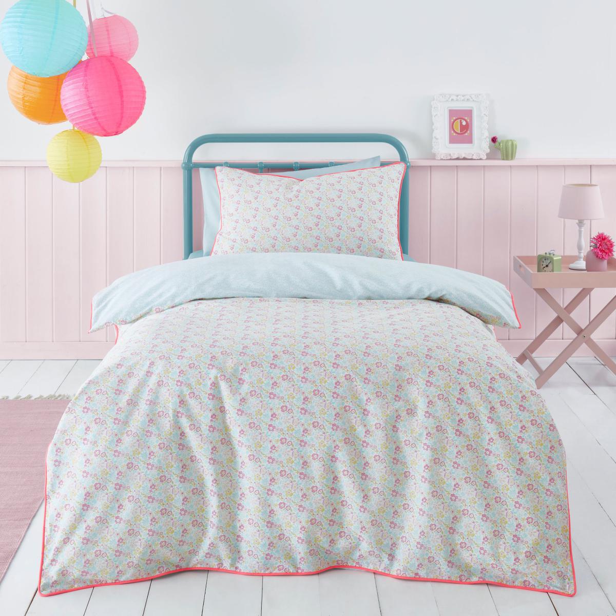 Boasting a beautiful pink floral design, this duvet cover and pillowcase set adds a stylish touch to your child's bedroom. With a fully reversible design and piped detailing, you can choose between two pink floral prints. Made from 100% cotton this bedding set is super soft, durable and machine washable. This collection is verified by OEKO-TEX® and independently tested for harmful substances as well as manufactured using sustainable processes under socially responsible working conditions. MADE IN GREEN by OEKO-TEX® is a unique product label to trace the countries and production facilities - search the product label for more information on. Here.