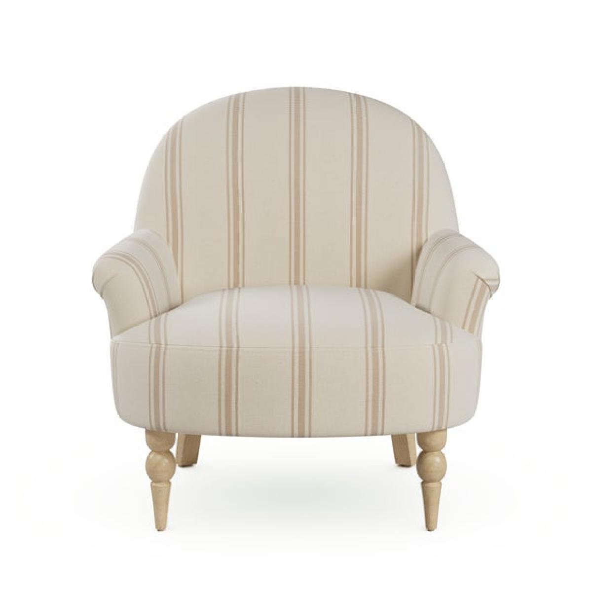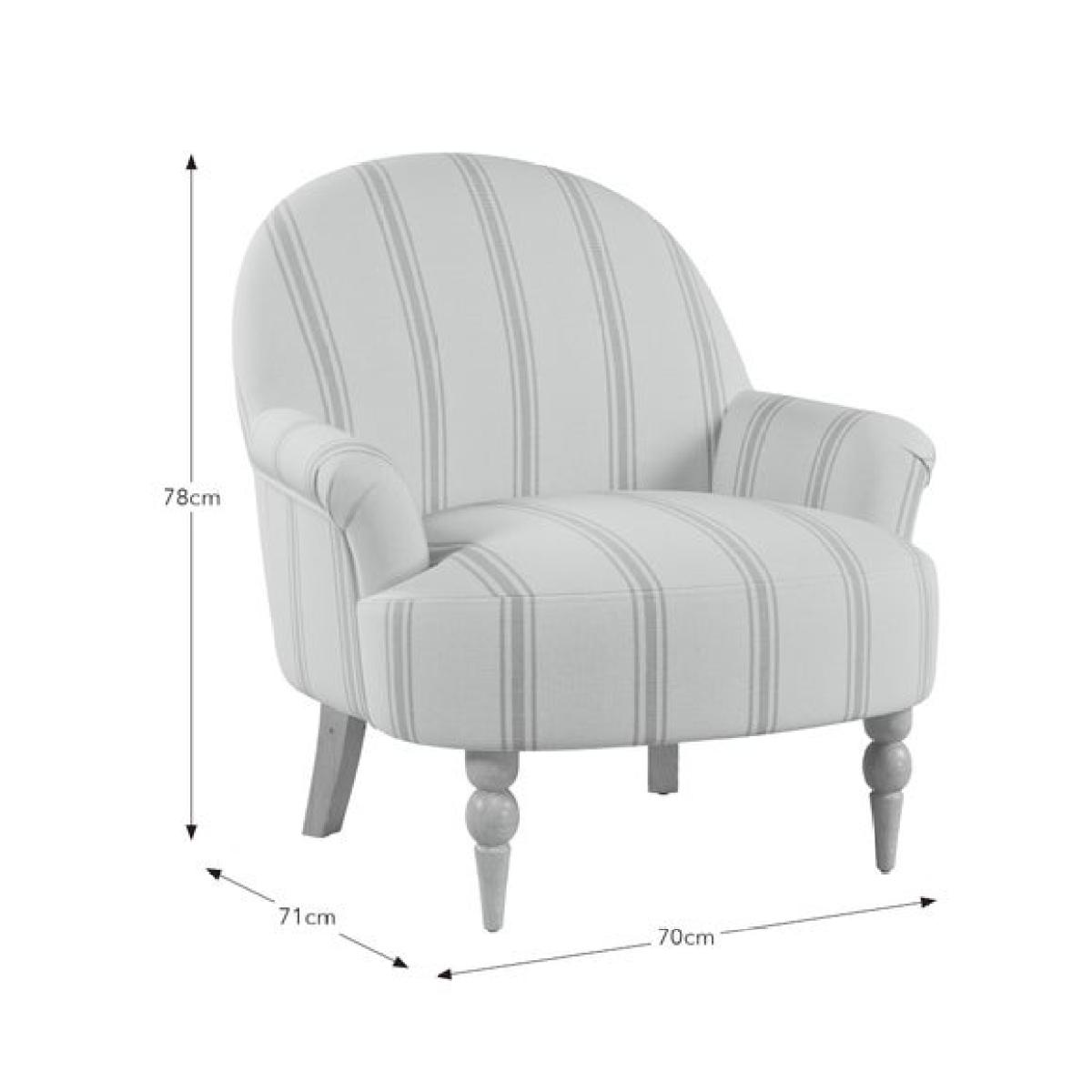 * Small Chair * Soft Upholstery * Rubberwood Legs Upholstered in a delightful folkstone stripe fabric, this armchair brings a touch of character and style to your home. Its compact size makes it ideal for smaller rooms or as an accent piece in larger settings. Sink into its plush seat and experience ultimate comfort as you unwind after a busy day.
