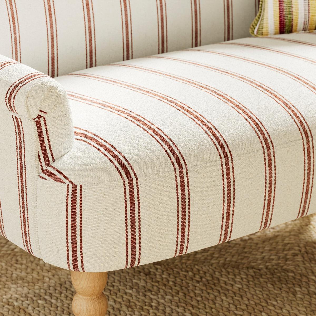 I’m a fan of this little terracotta-striped settee for its compact scale and timeless colourway - it’s great in a snug living room, a sun-lit reading corner or even at the end of a bed. The warm stripes work particularly well with natural materials such as rattan basket planters, a jute rug and light oak furniture. To style it, keep nearby textiles in soft neutrals or muted greens and add a couple of scatter cushions in linen or boucle for contrast; it’ll lift a contemporary country scheme just as easily as a coastal or Scandi-inspired space.