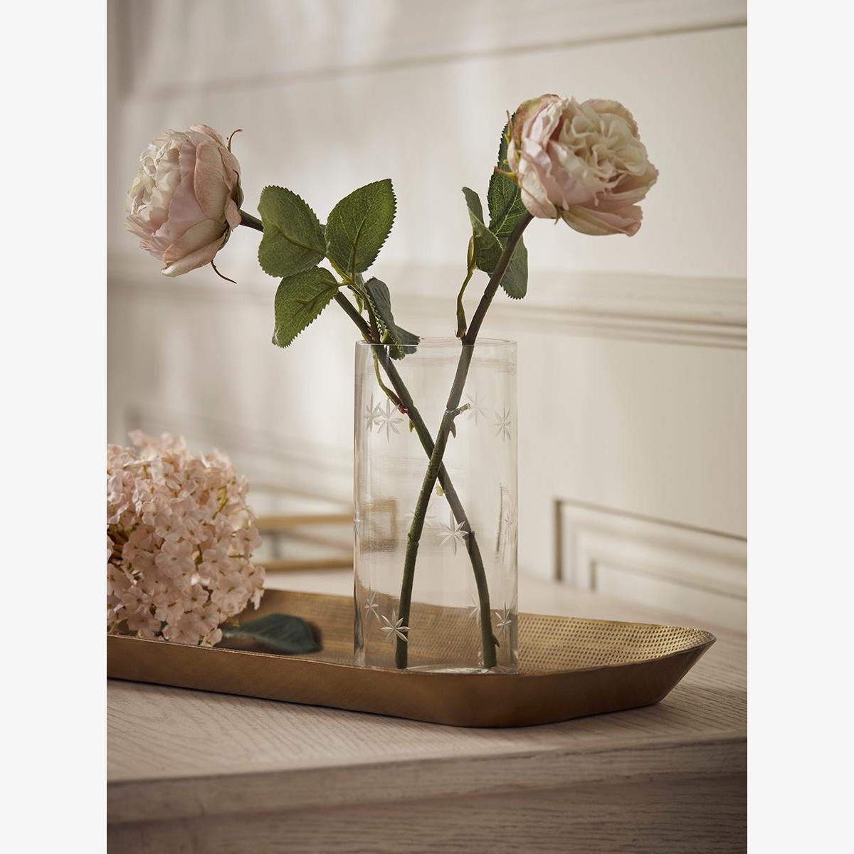A simple silhouette is enhanced by delicately engraved hand drawn stars, inviting a quiet elegance to your space. Place a few single stems or smaller bouquets in this vase either on a sideboard or side table and create a pretty and quaint spot for your flowers to bloom beautifully.